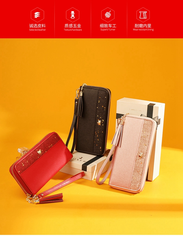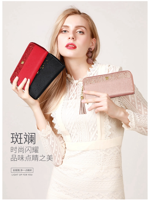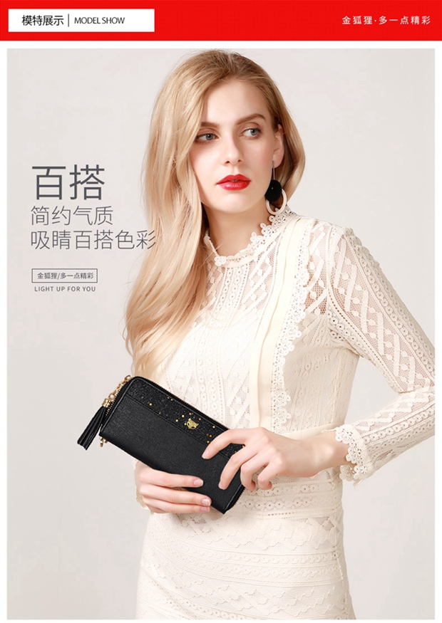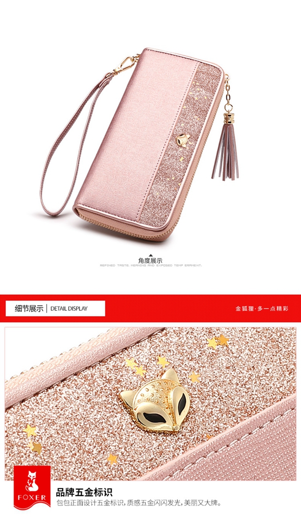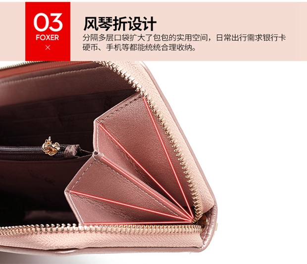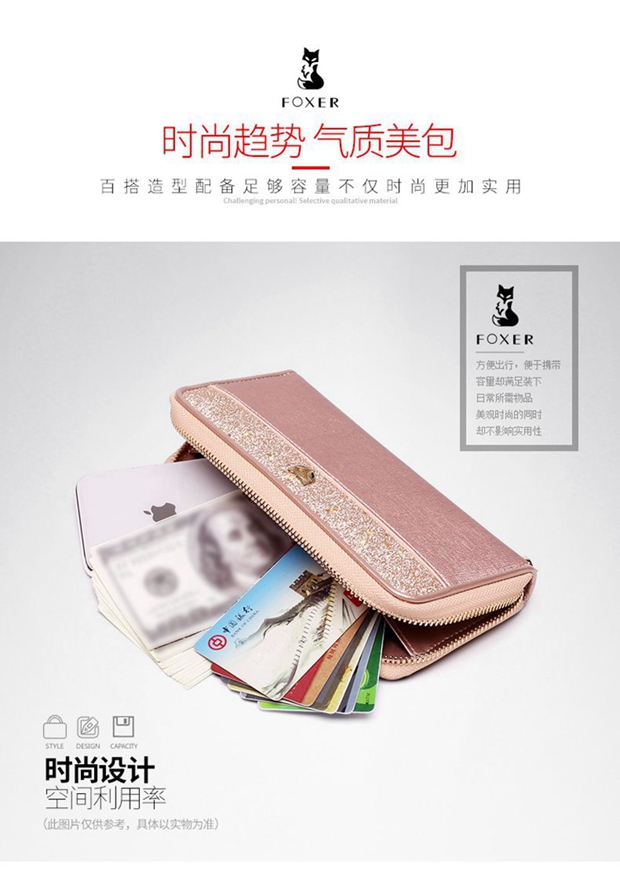 Golden Fox (FOXER) cowhide women's wallet large capacity long card holder wallet wallet clutch bag light luxury girlfriend birthday gift