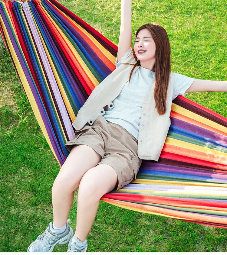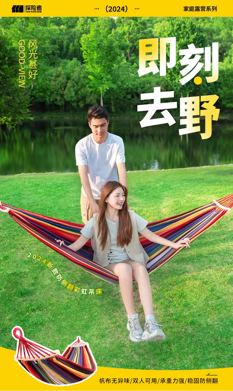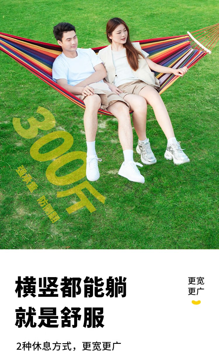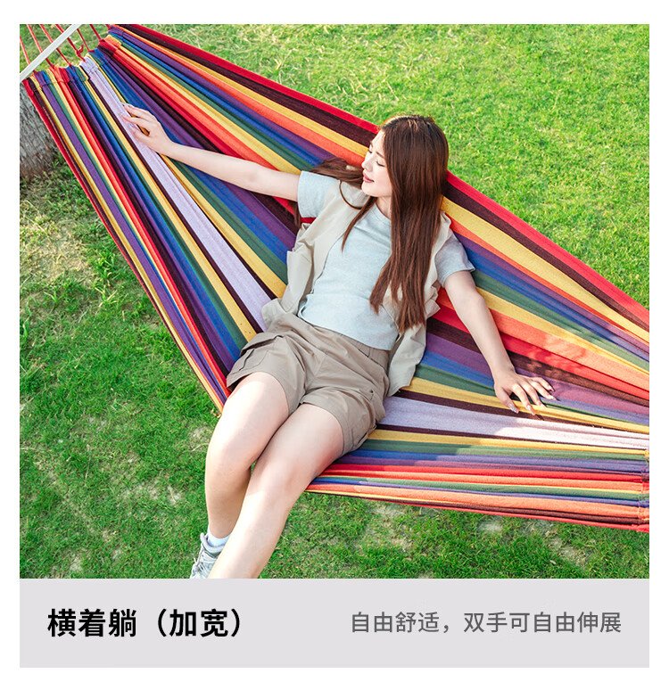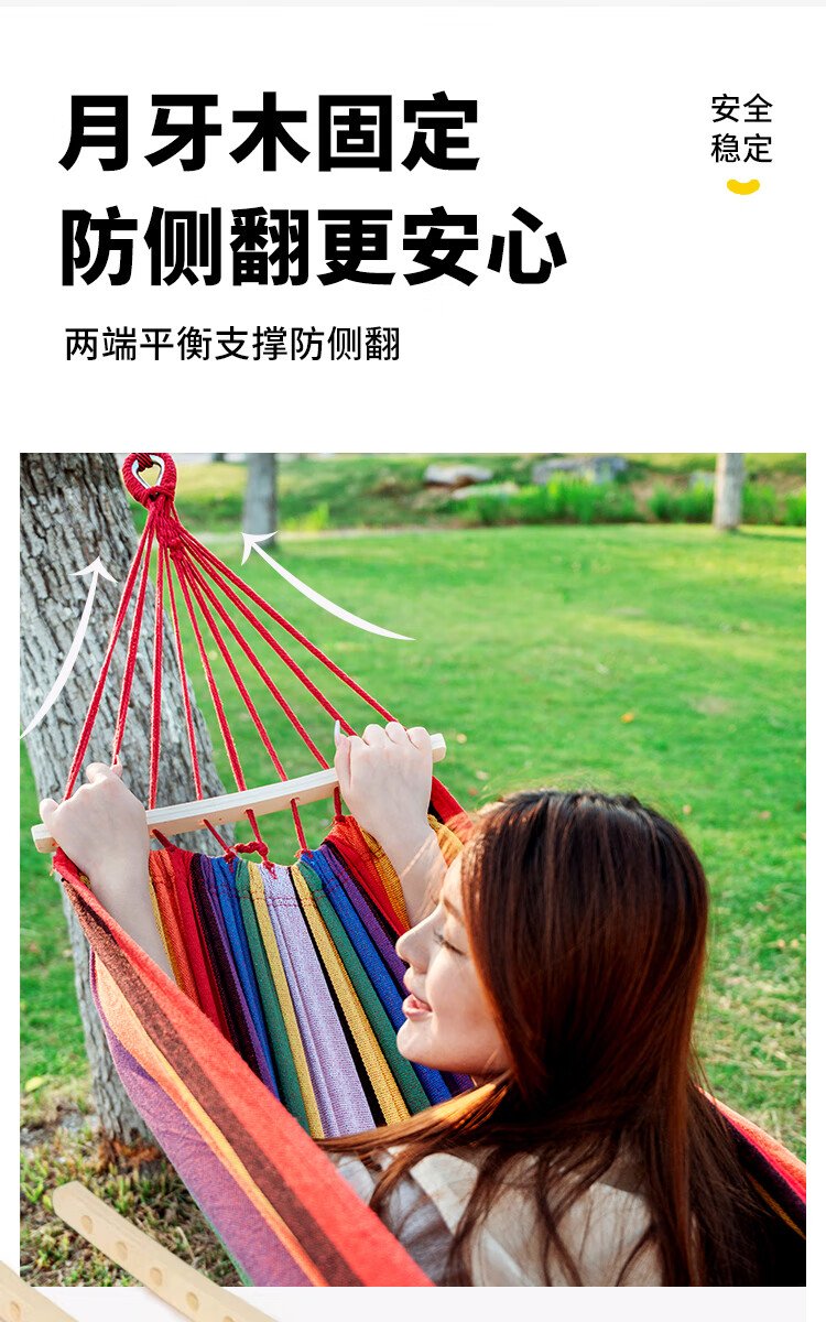 Explorer (TAN XIAN ZHE) outdoor camping leisure thickened and widened canvas hammock indoor bent wood anti-rollover double blue crescent hammock