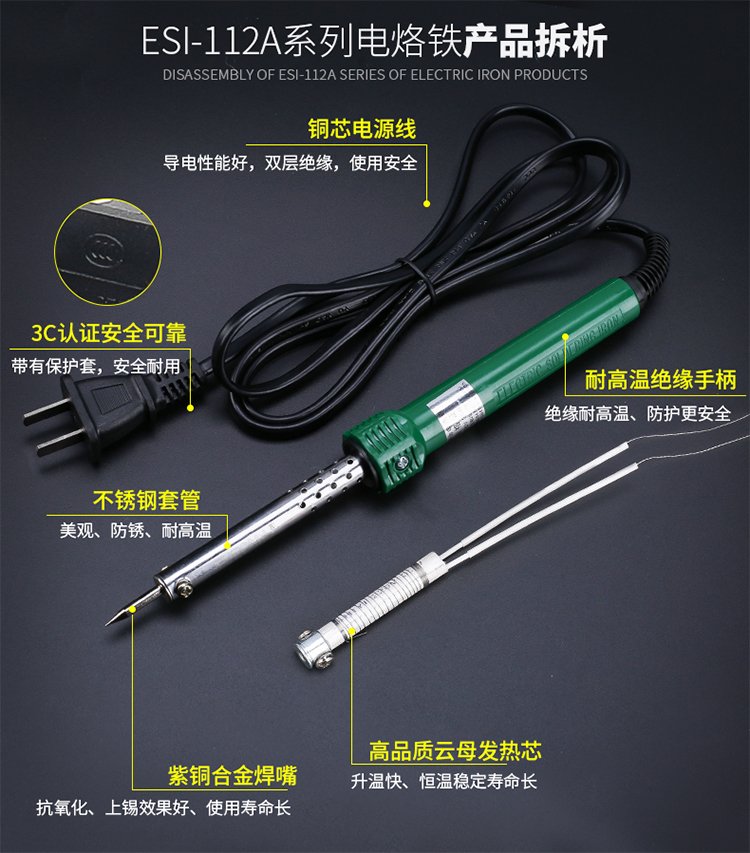 ELECALL electric soldering iron set 60W containing rosin solder wire soldering iron stand high temperature sponge electronic tool set ESI-112A