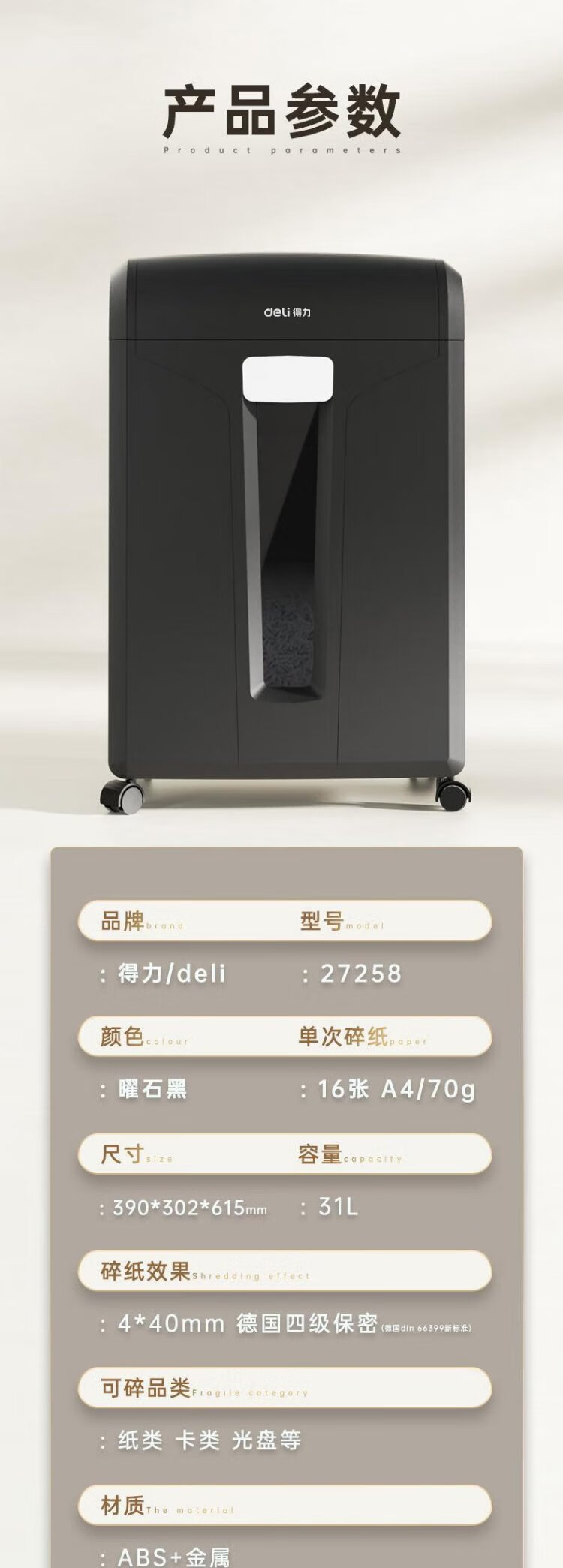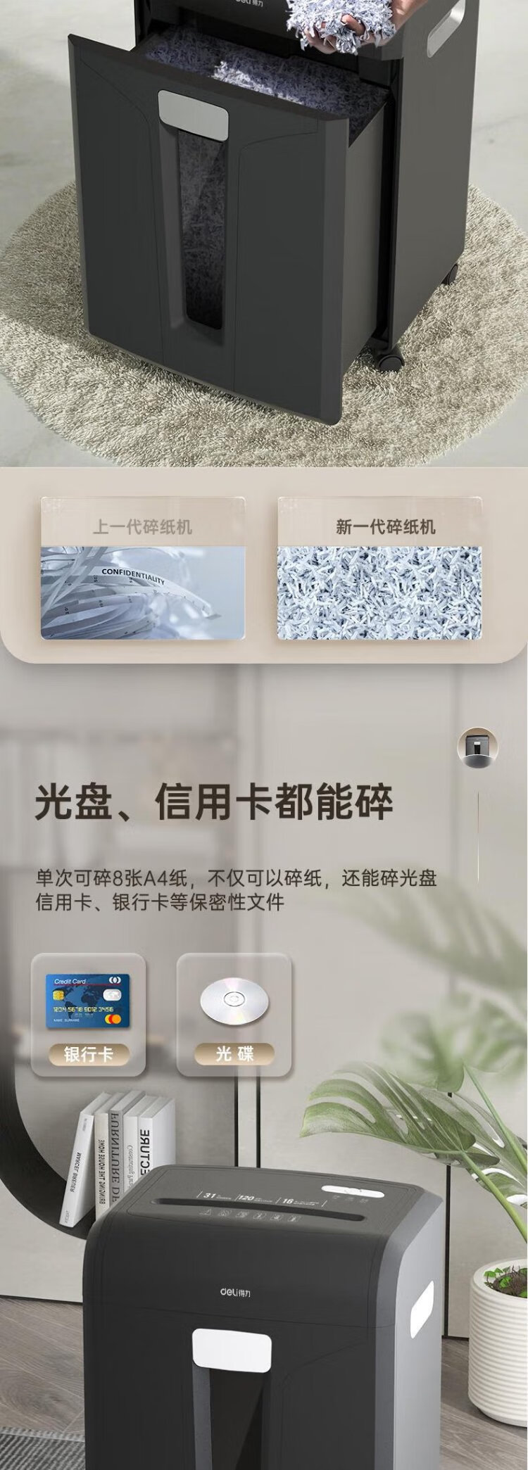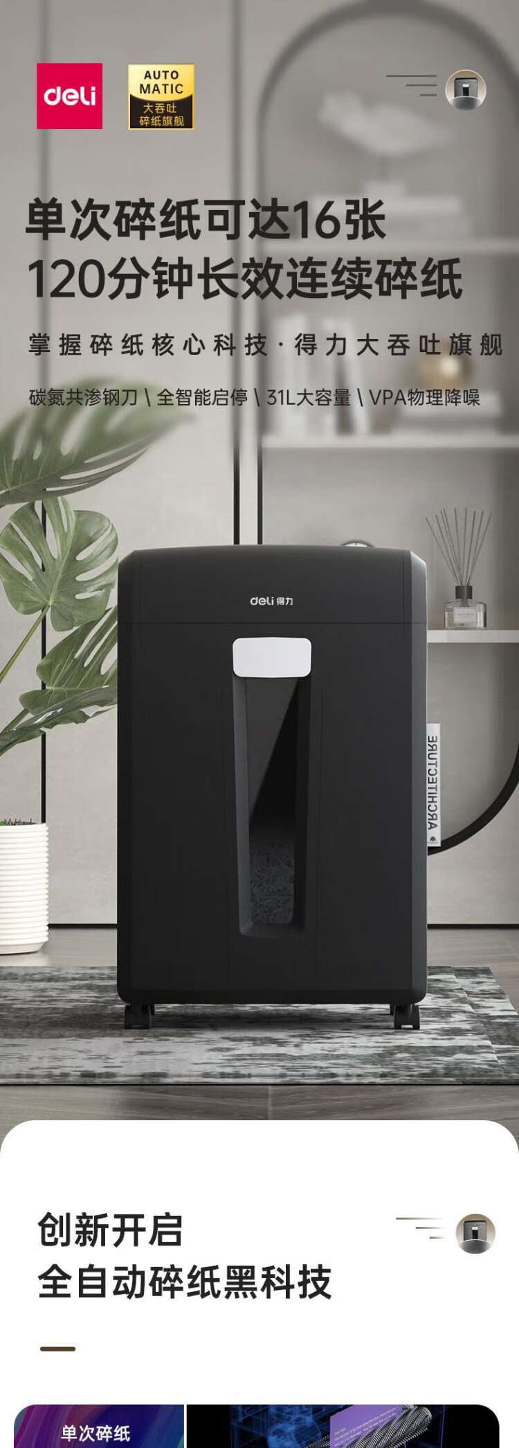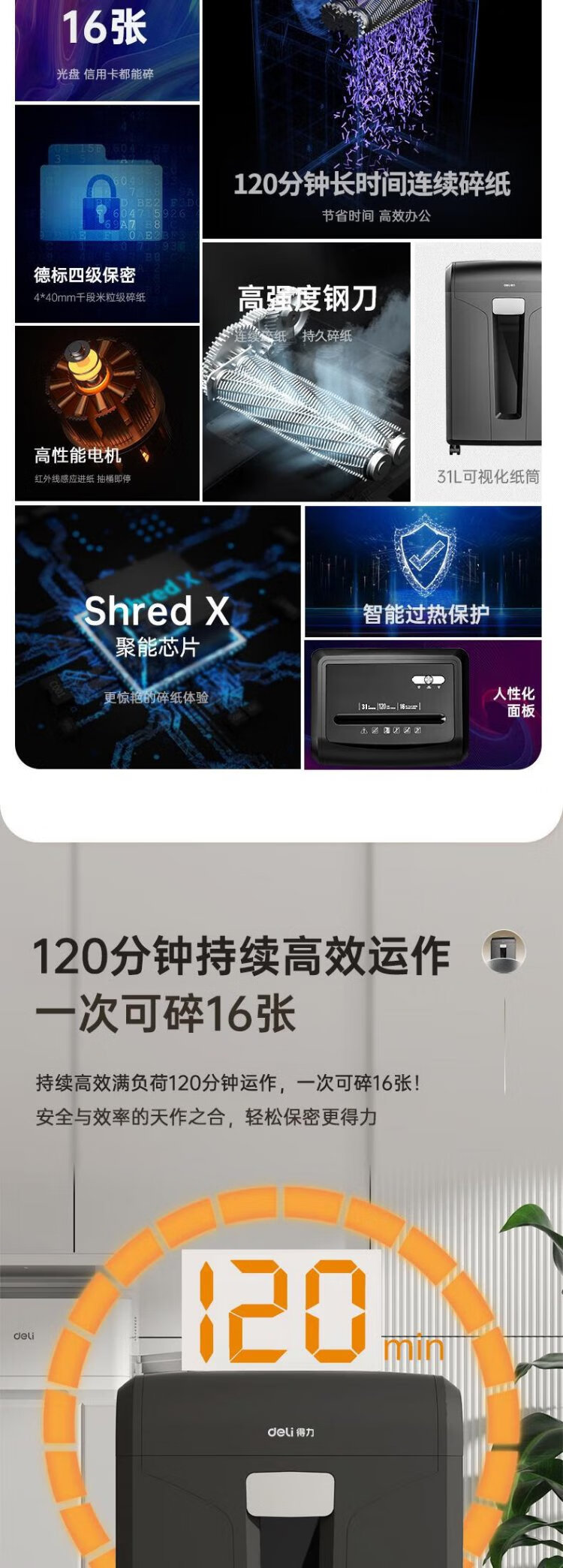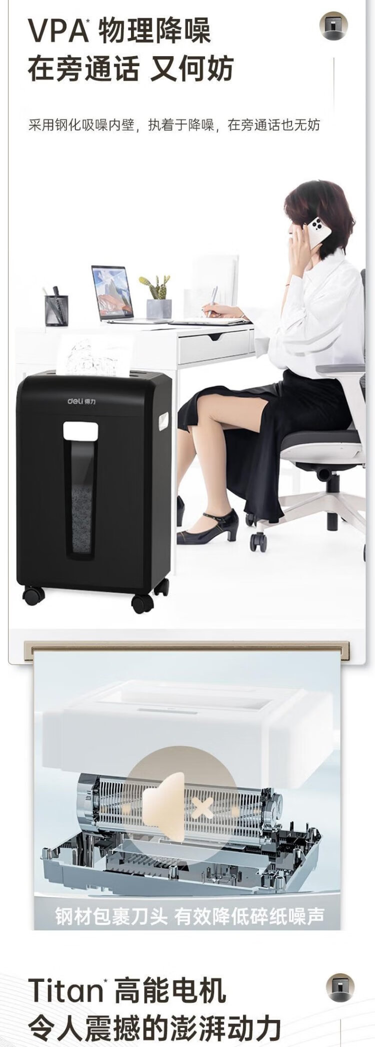 Deli Commercial Office Upgrade 120 Minutes Continuous Shredding of 16 Sheets at a Time Large Business Shredder Home Large Throughput Long Time Level 4 Shredding Cards/CDs 27258
