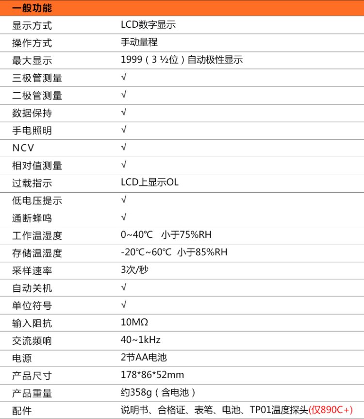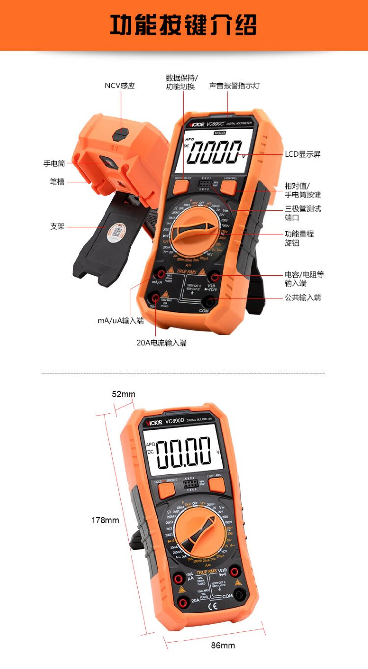 Victory Instrument (VICTOR) digital multimeter high-precision electrician special car multimeter home use VC890D
