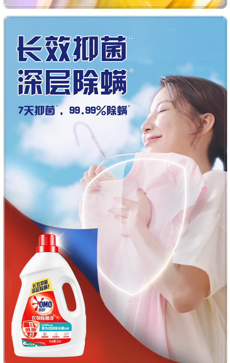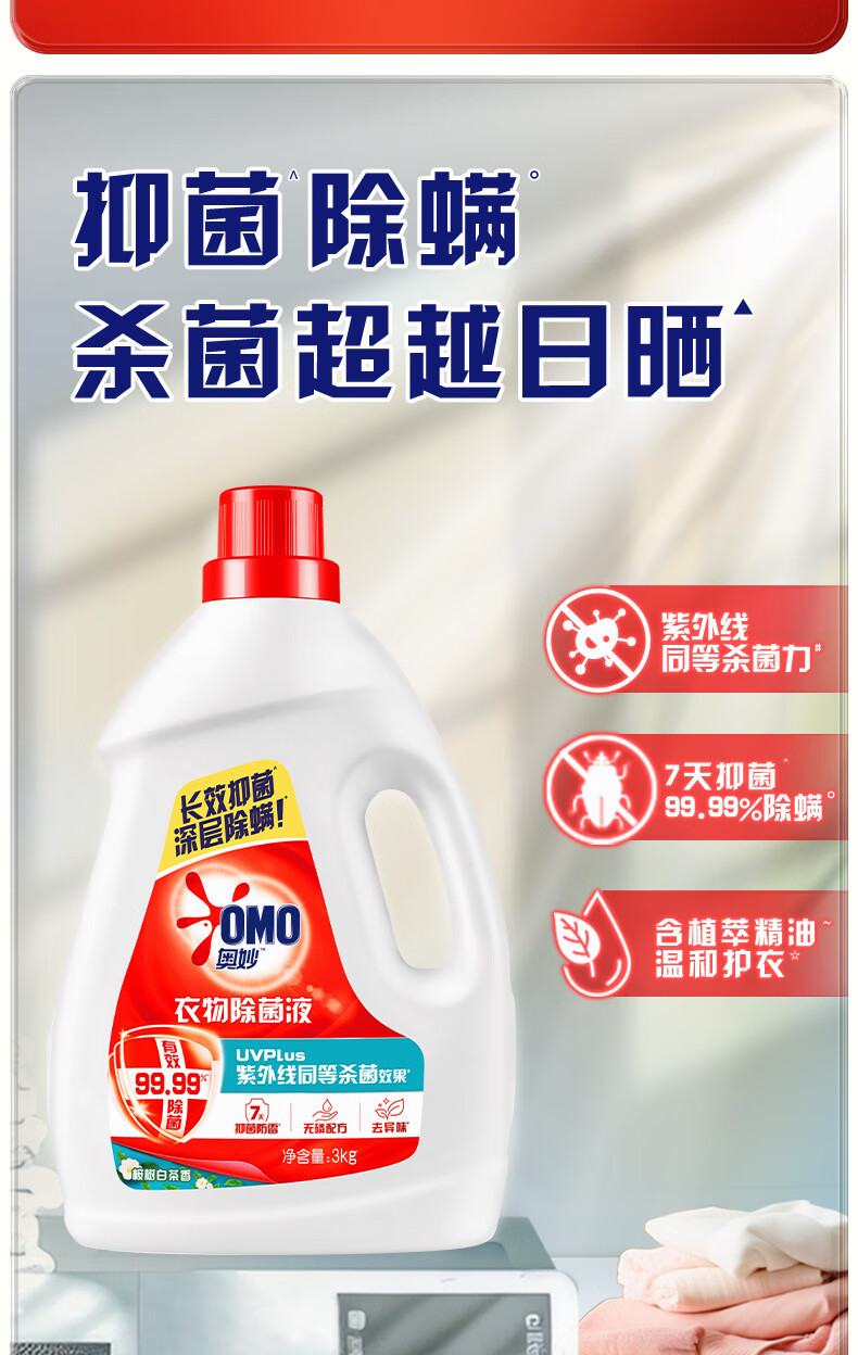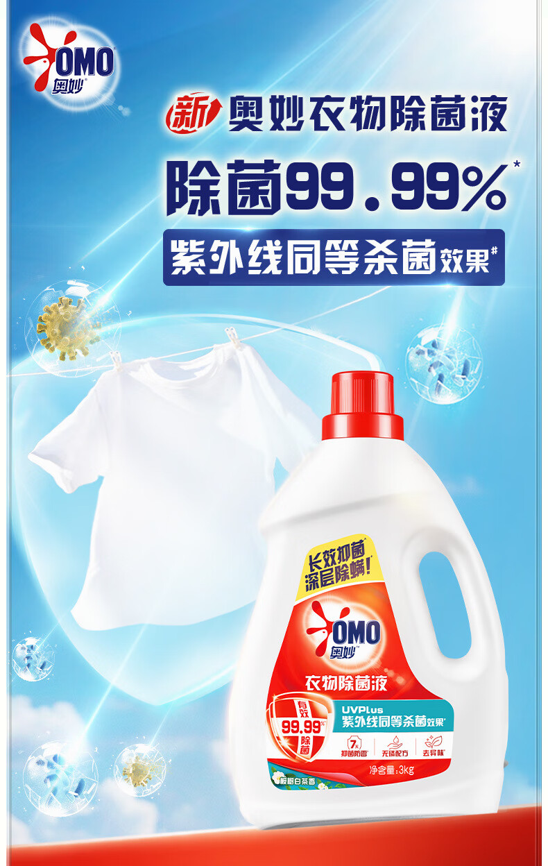 奥妙衣物除菌除臭抑菌除螨99.99%6斤装 外衣内裤袜子混洗 梅雨季去味