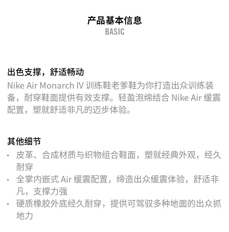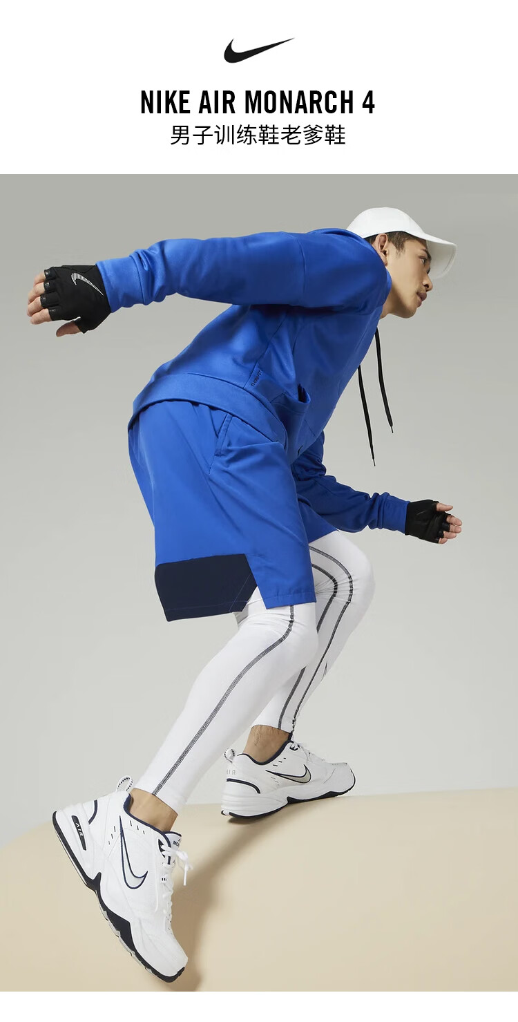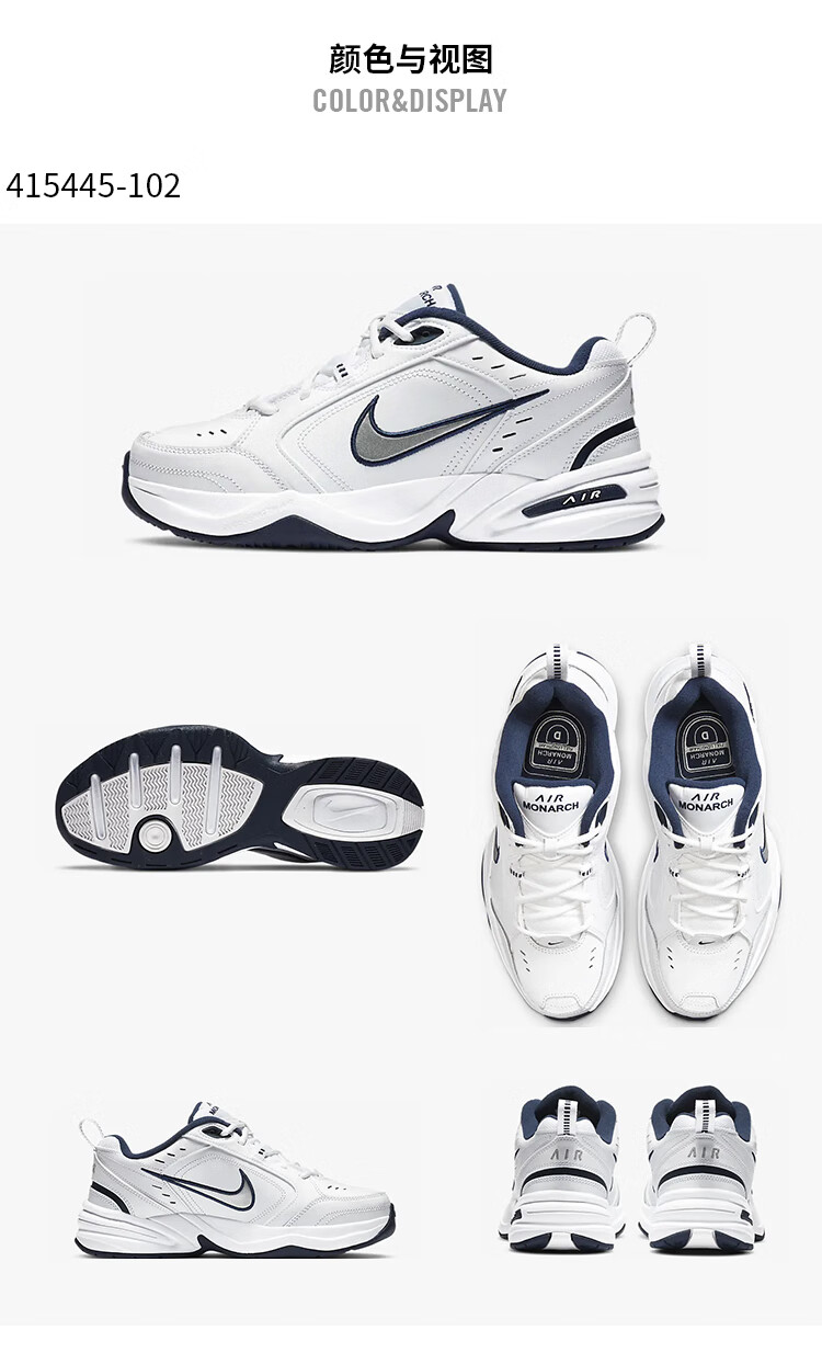 Nike NIKE men's autumn and winter dad shoes AIR MONARCH IV sports training shoes 415445-102 white blue 42