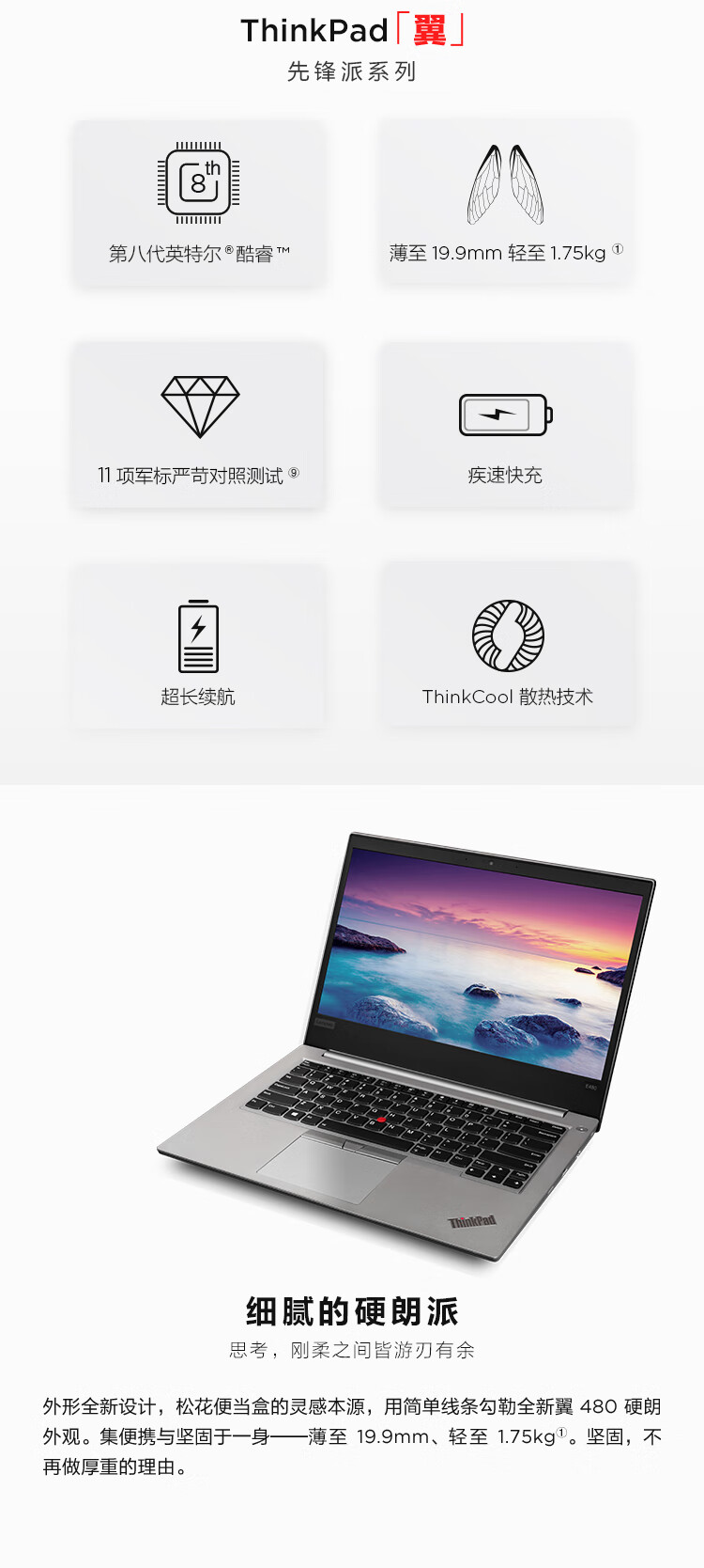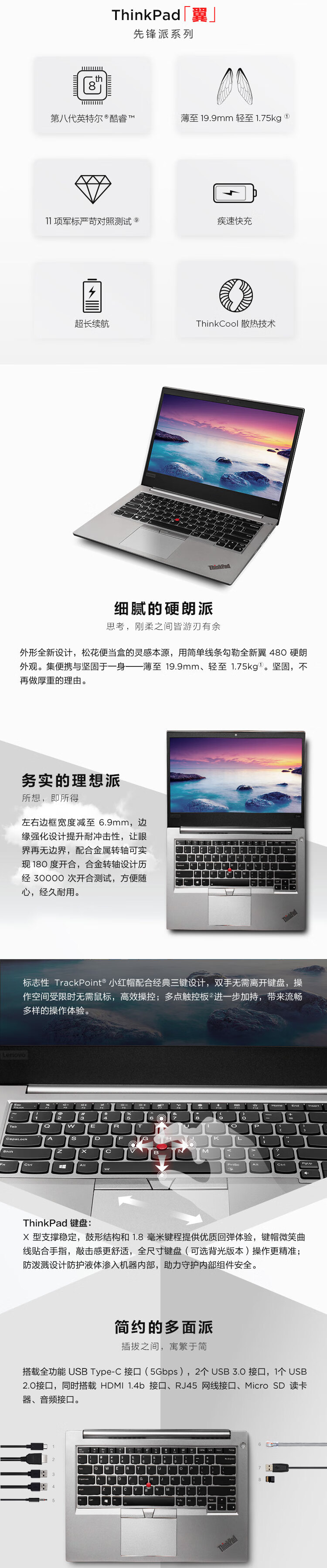 Lenovo ThinkPad Wing 480 (4VCD) Intel Core i5 14-inch thin and light laptop (i5-8250U 8G 128GSSD+1T 2G independent display FHD) Icefield Silver
