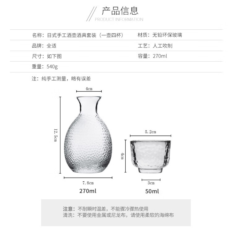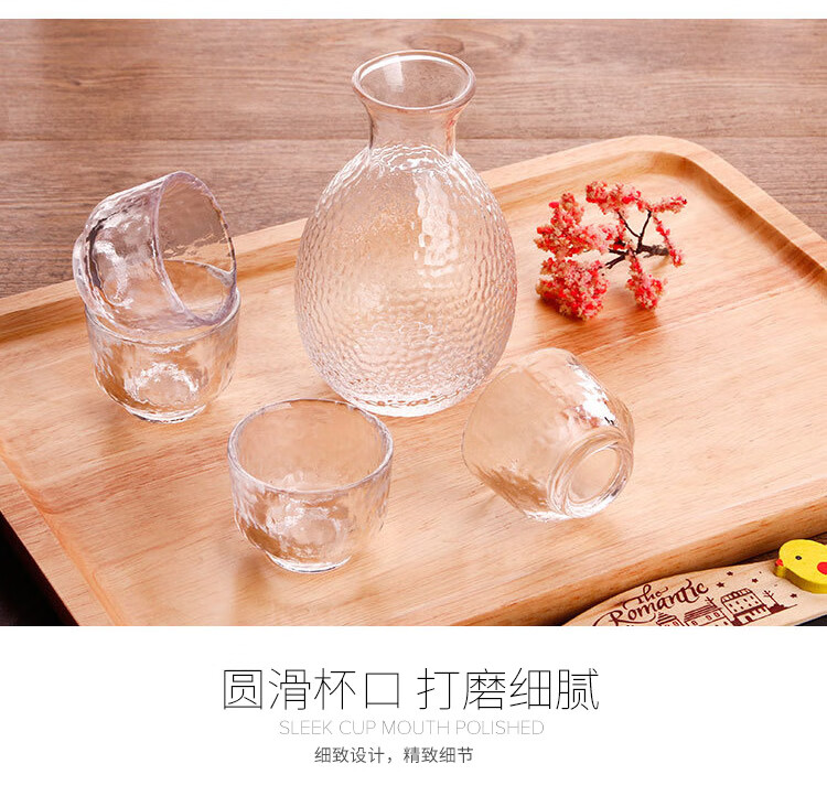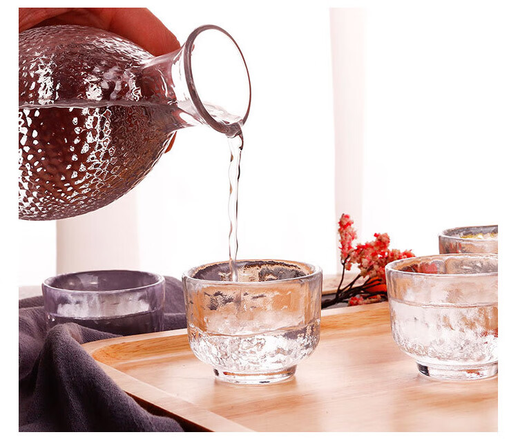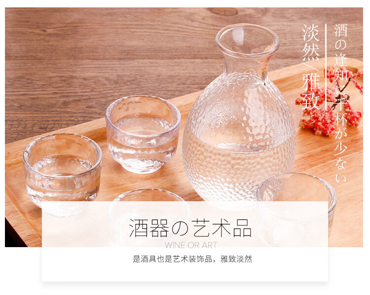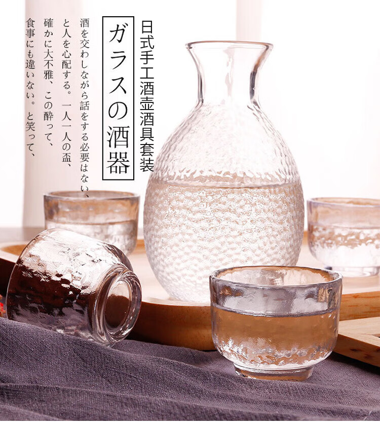 All-purpose Japanese-style glass wine set and wind hammer pattern one pot and four cups household sake pot, white wine cup, wine cup and wine divider