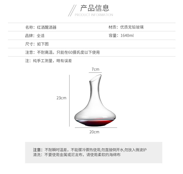 Quanshi glass red wine decanter wine divider household high-end rapid decanter flask wine set 1640ml