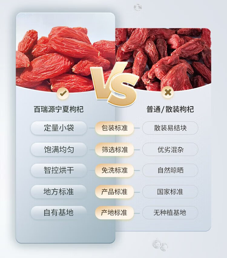 Bairuiyuan wolfberry, Ningxia wolfberry, premium quality wolfberry, Zhongning red wolfberry 216g*2 bags, independent small packaging