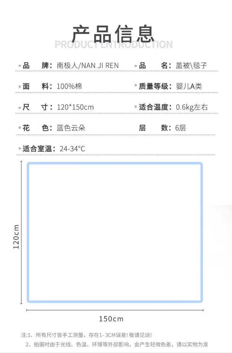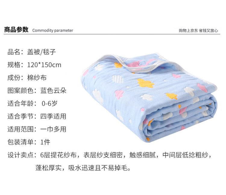 Nanjiren (Nanjiren) children's gauze quilt baby quilt pure cotton cover blanket kindergarten air-conditioning quilt bedding suitable for all seasons