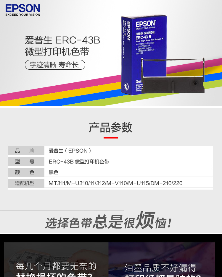 Epson ERC-43B Mini Printer Ribbon Holder Black (Applicable to MT311/M-U310/11/312/M-V110/M-U115/DM-210/220 models)