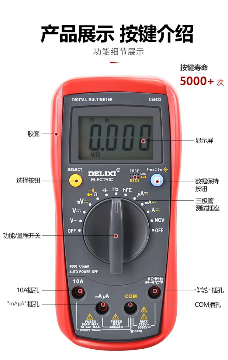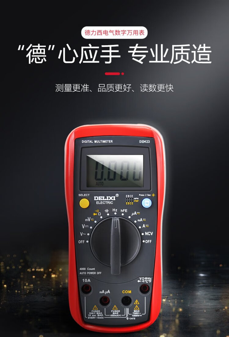 Delixi Electric digital multimeter anti-burn backlit digital display high-precision multimeter household ammeter DEM23