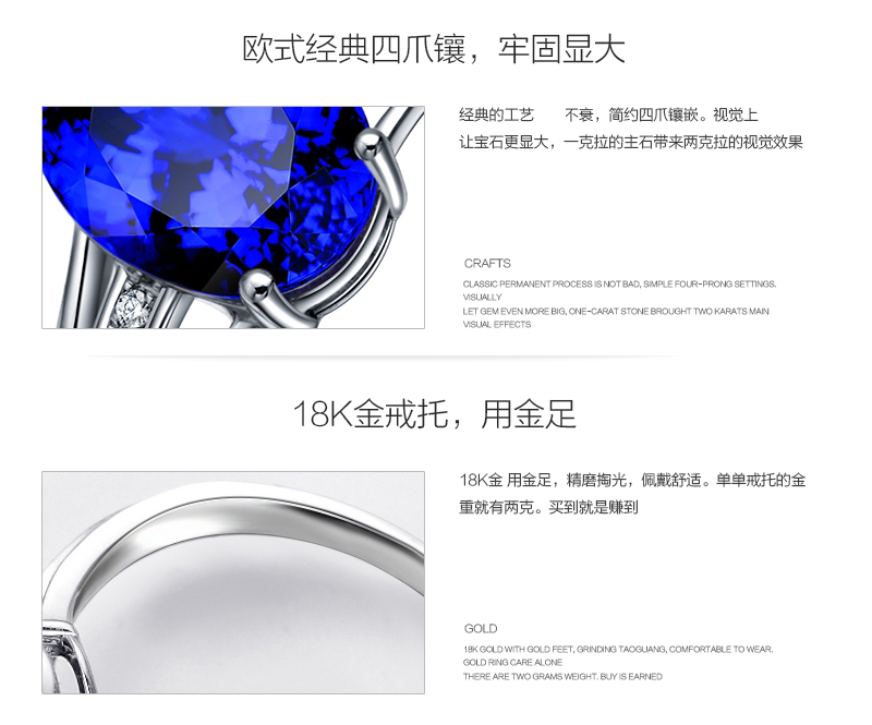 Lescreation Lisa Jewelry 1.9 carat natural diamond tanzanite colored gem ring white 18K gold blue gemstone 1.9 carat tanzanite ring 4A grade