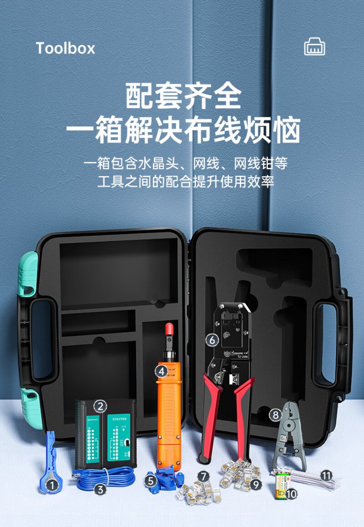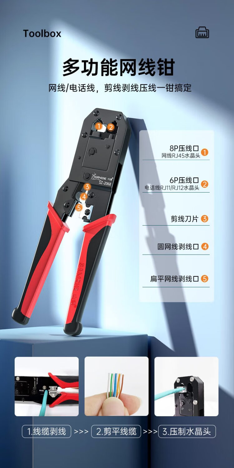 SAMZHE network cable pliers network tool box set with tester crystal head wire stripping knife home use SZ-110
