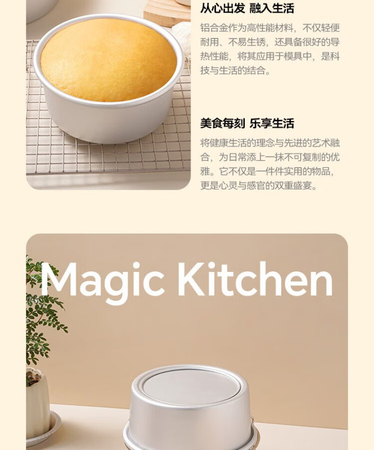 Magic Kitchen Chiffon Cake Mold 6-inch Cake Mold Round Anodized Aluminum Pole Cake Making Mold Tool Baking Mold