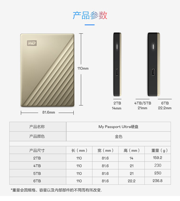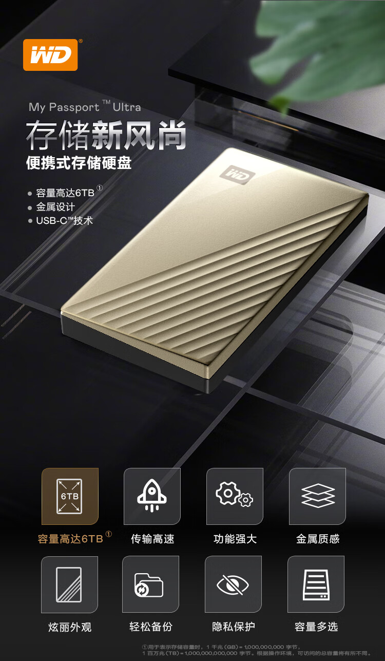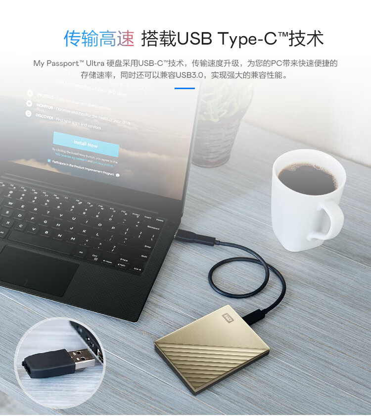 Western Digital (WD) 4TB mobile hard drive type-c Ultra series 2.5-inch gold mechanical hard drive laptop external encryption compatible with Mac large-capacity home storage