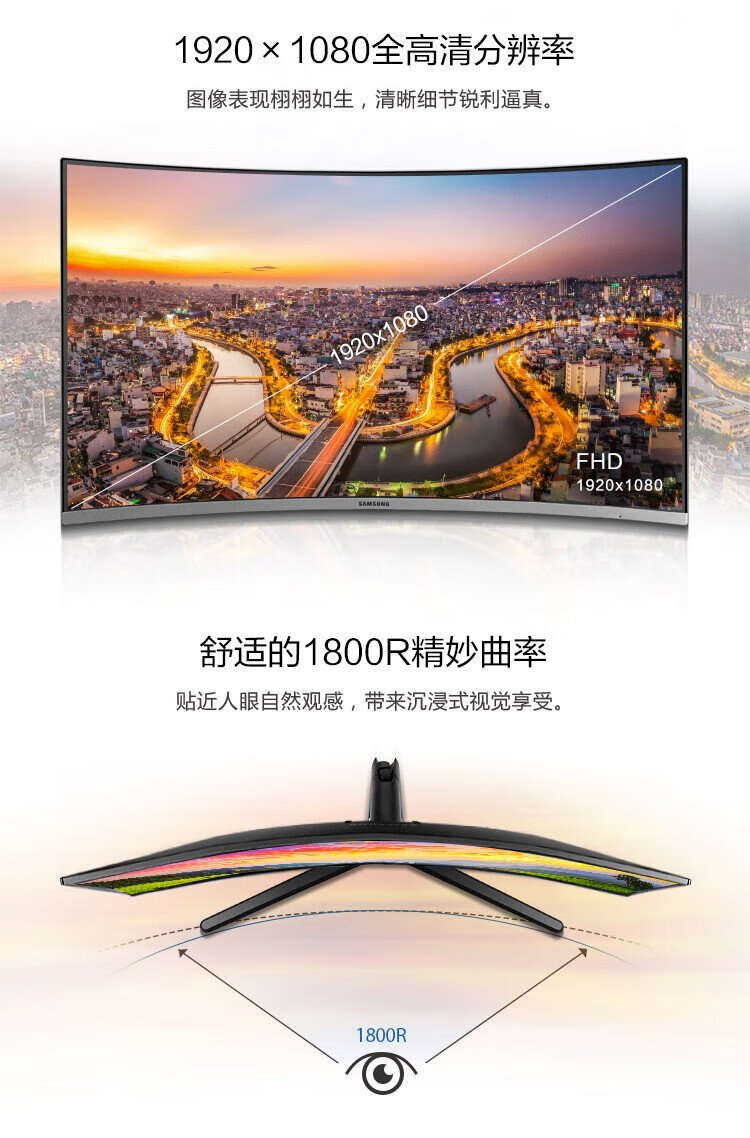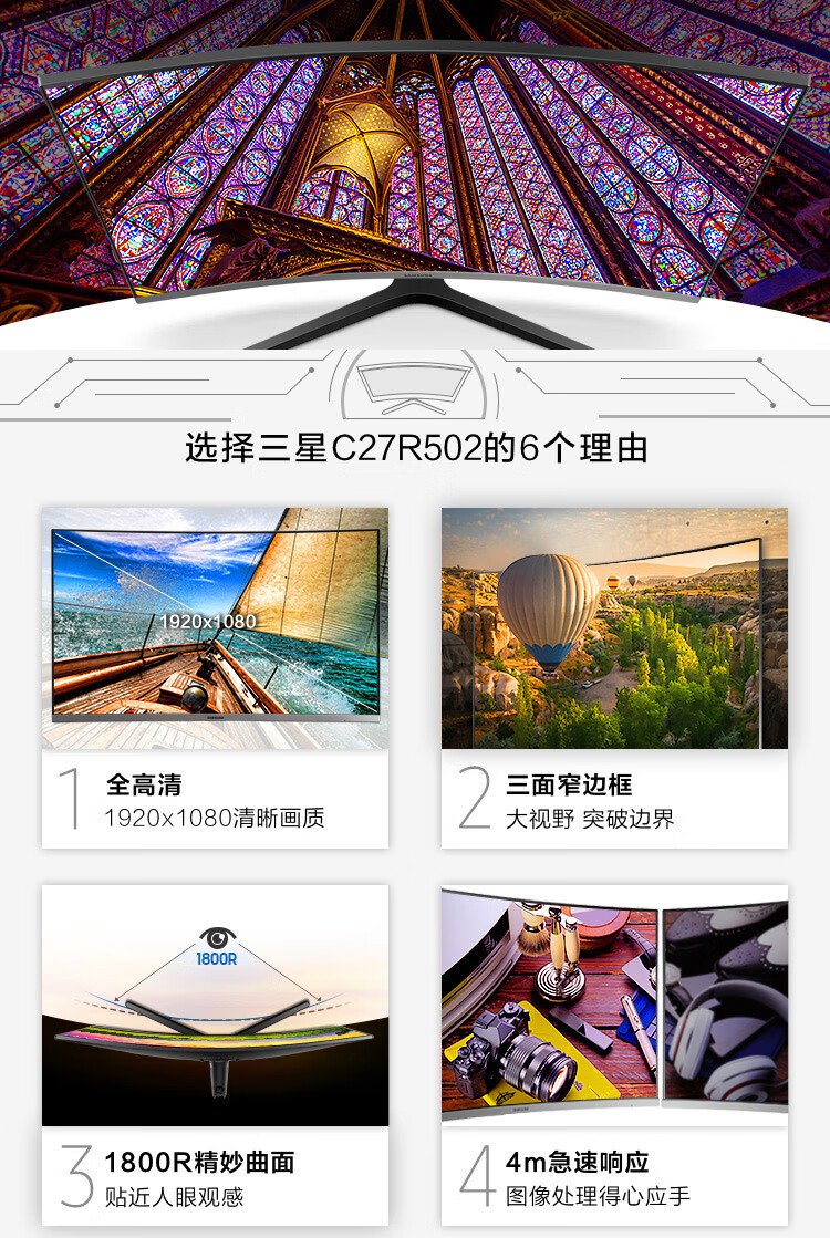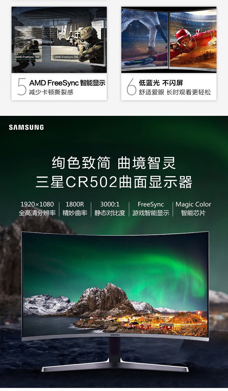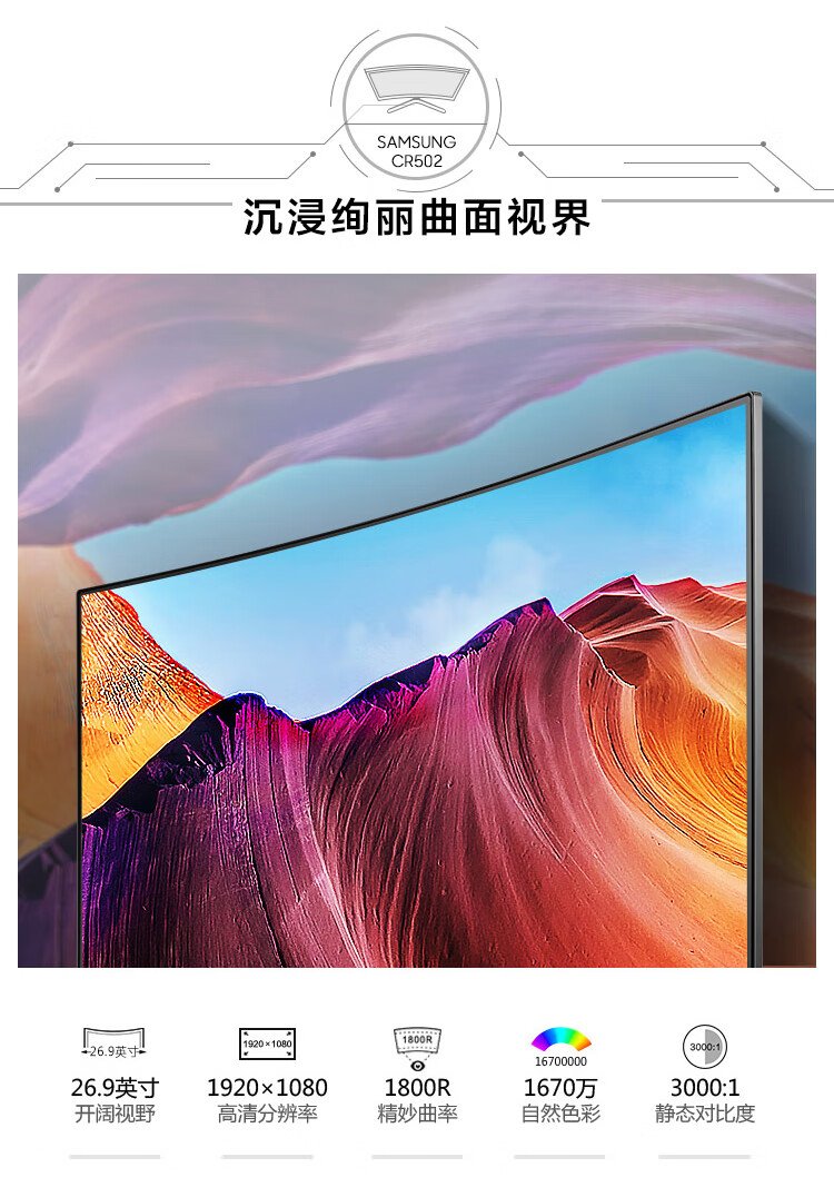 Samsung (SAMSUNG) 27-inch FHD 60hz curved low blue light flicker-free FreeSync wall-mountable narrow bezel office computer monitor C27R502