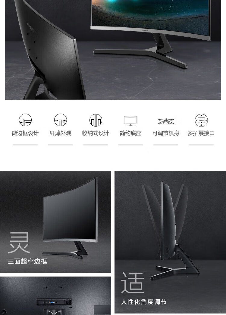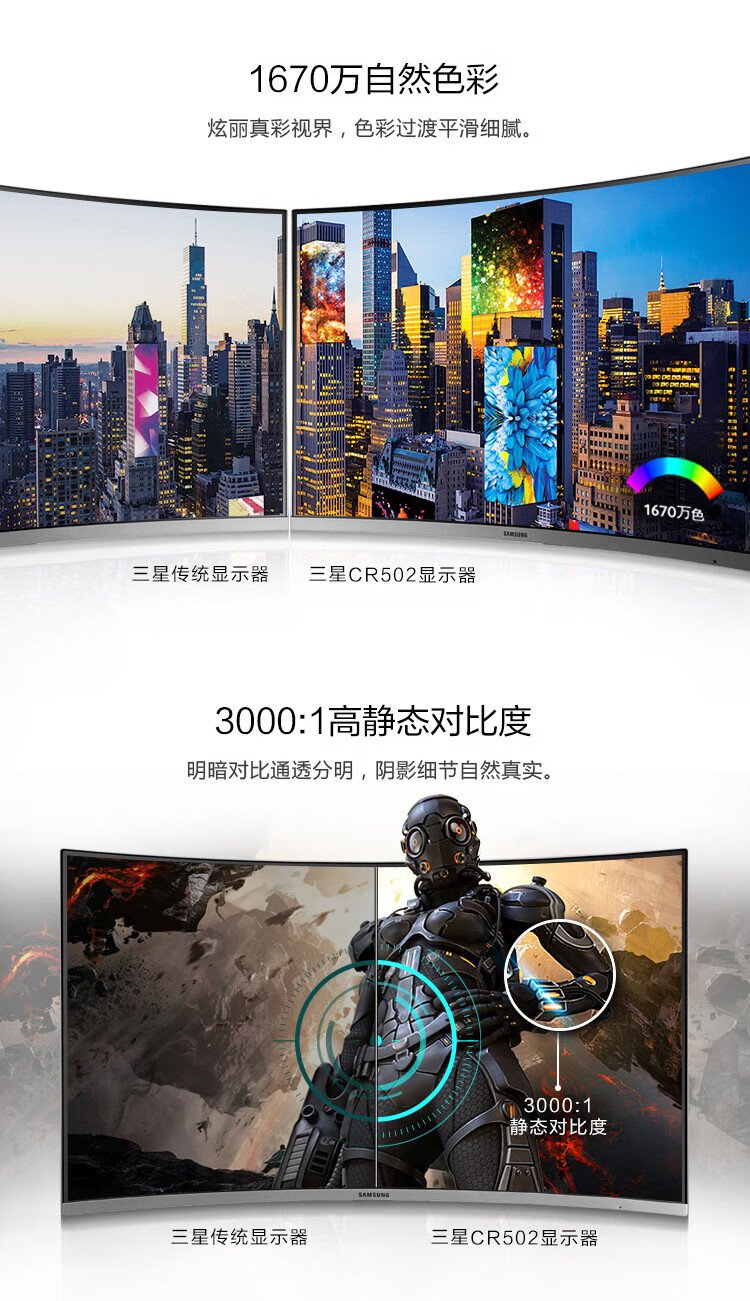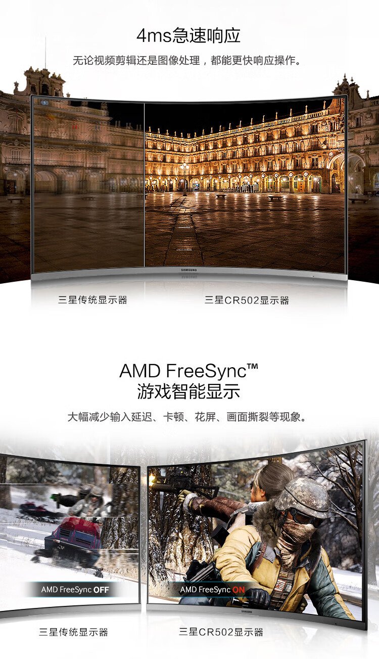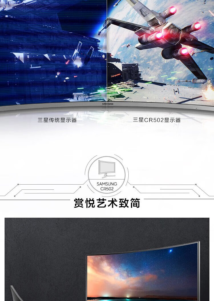 Samsung (SAMSUNG) 27-inch FHD 60hz curved low blue light flicker-free FreeSync wall-mountable narrow bezel office computer monitor C27R502