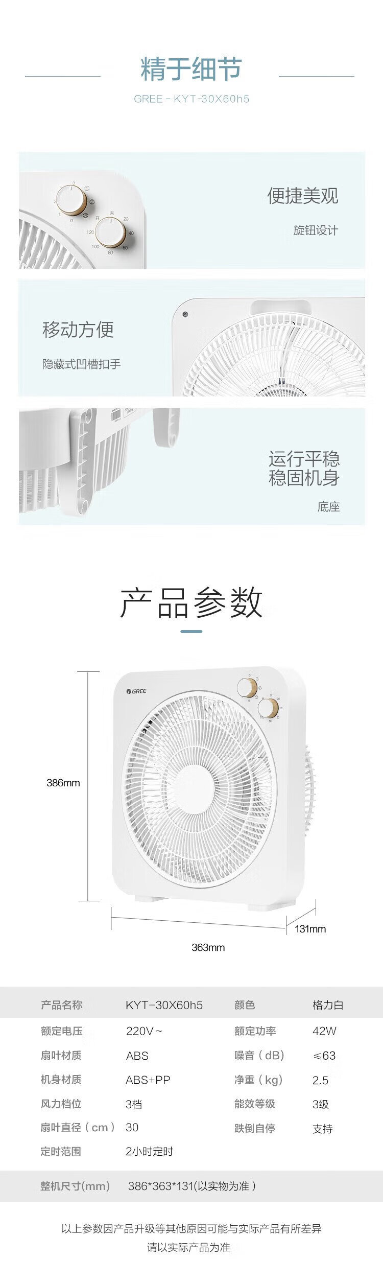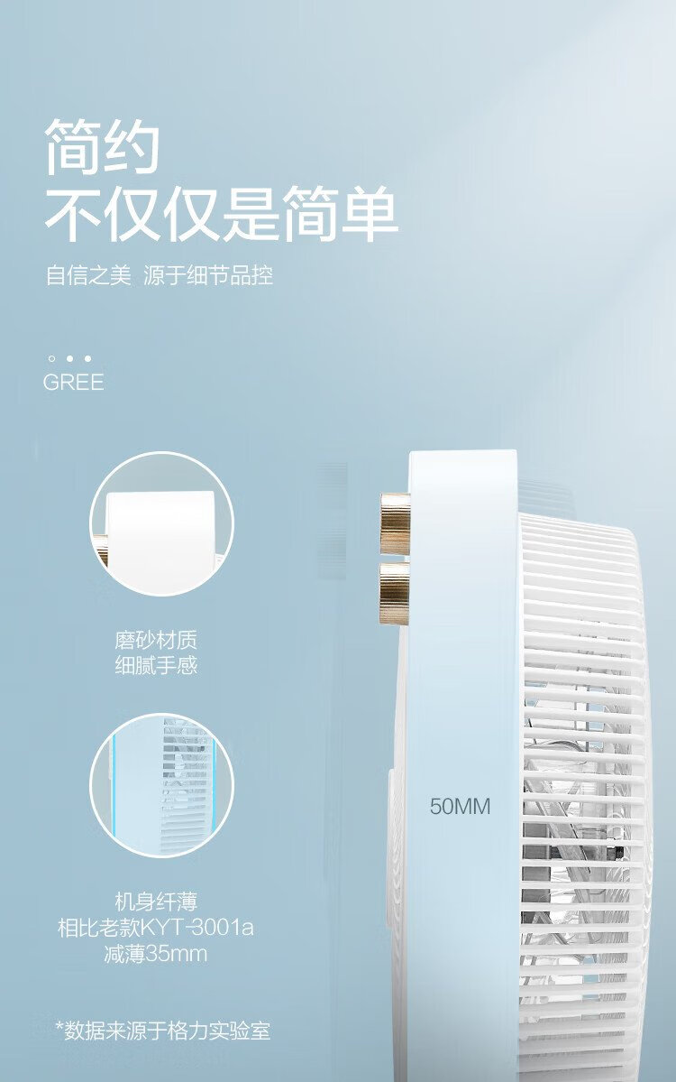 Gree (GREE) simple and stylish light sound air circulation fan household electric fan student dormitory office mini compact table fan floor fan desktop desktop fan KYT-30X60h5