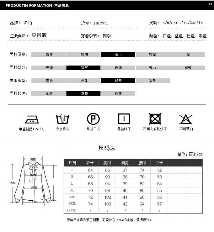 China (cm) 160-165/84-86 165-170 / 88-90 167-172 / 92-96 168-173 / 98-102 170-176 / 106-110
