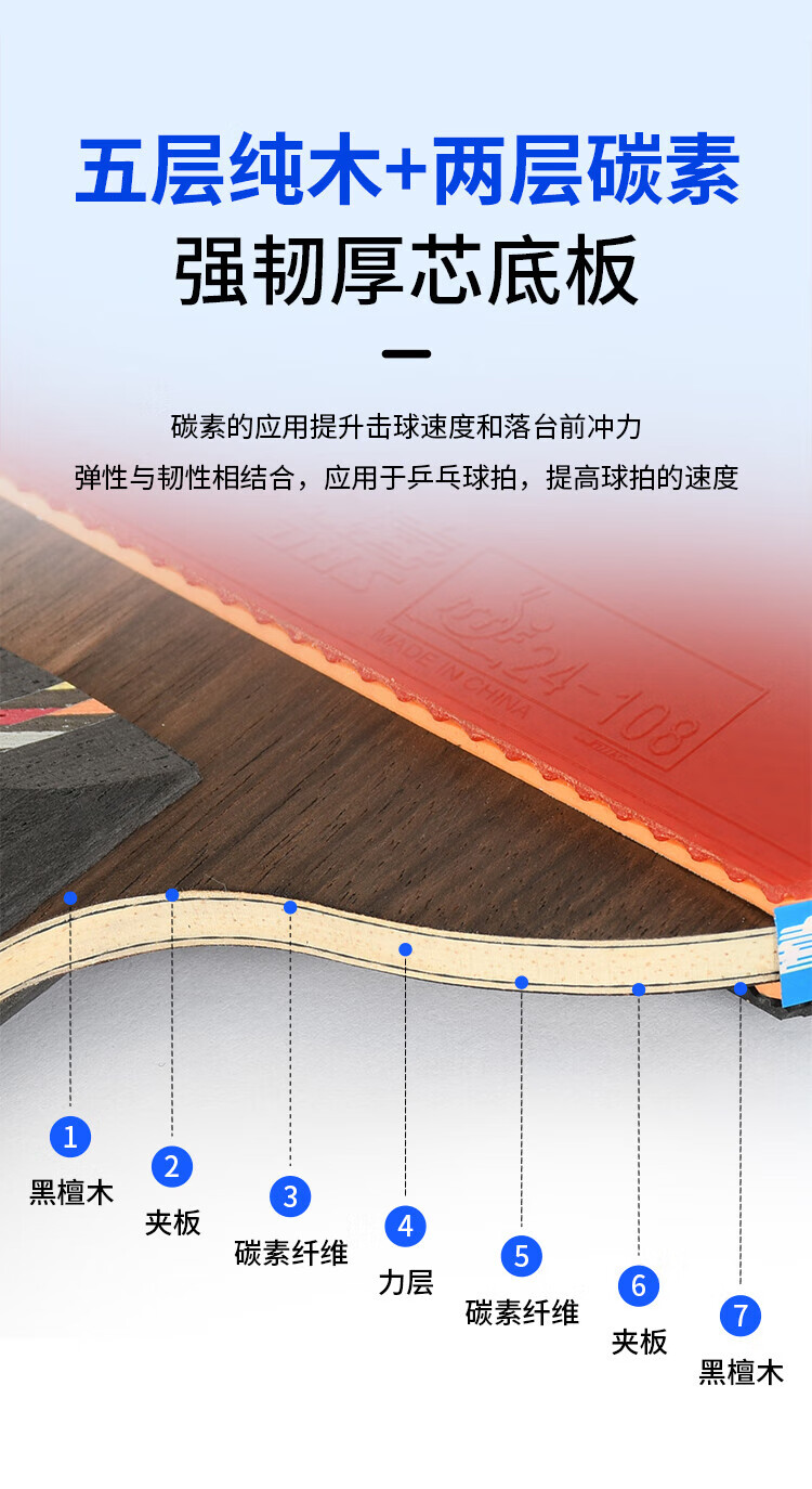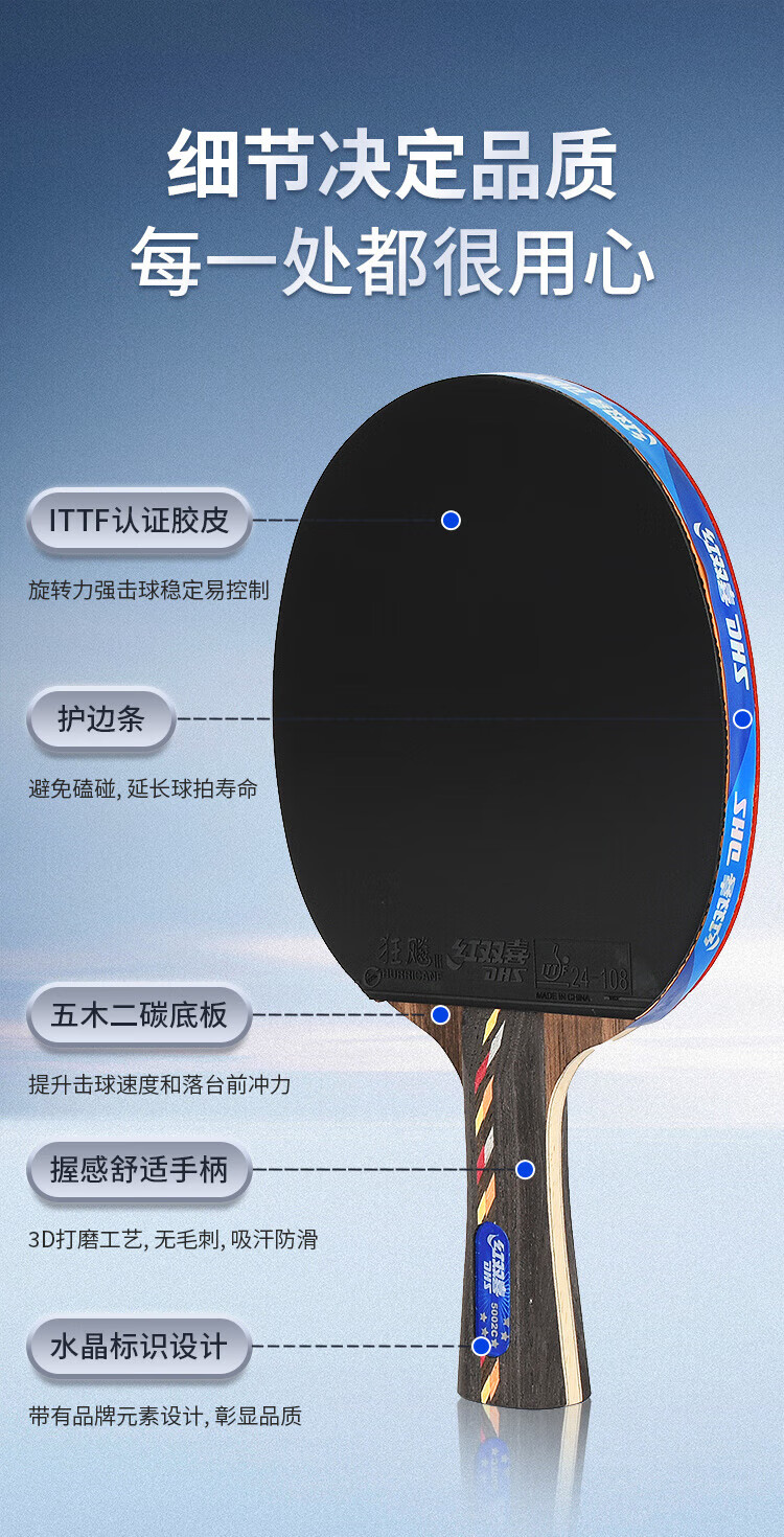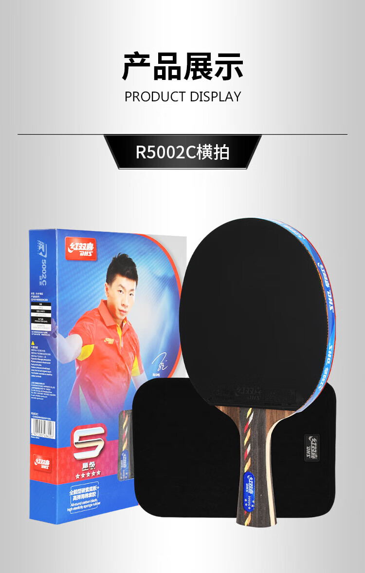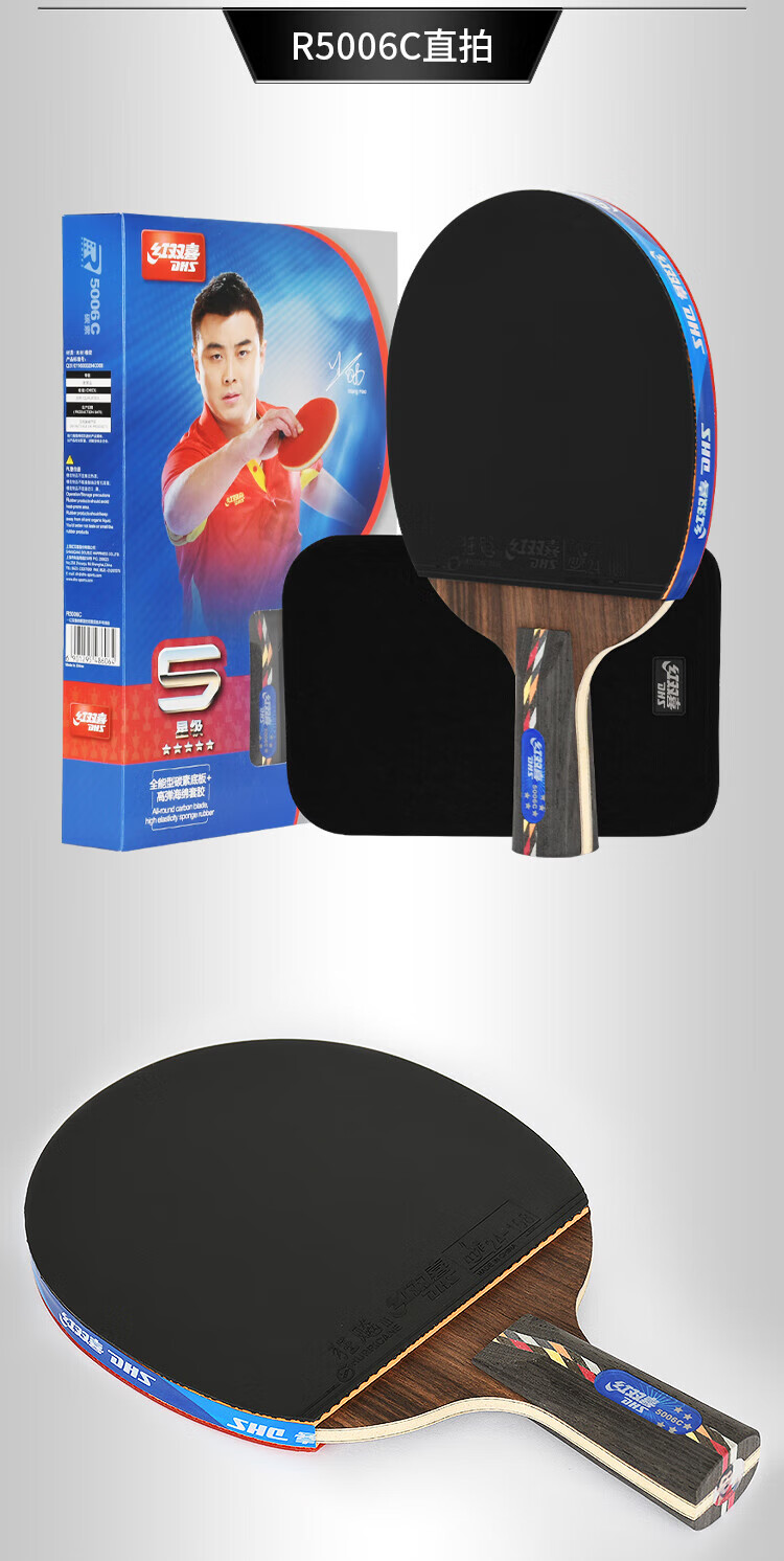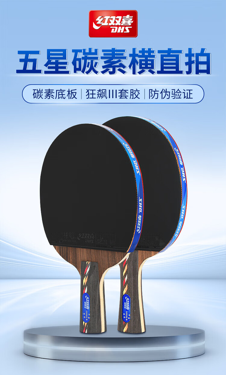 Double Happiness (DHS) table tennis racket five-star straight racket R5006C carbon base plate double-sided anti-rubber racket with racket case
