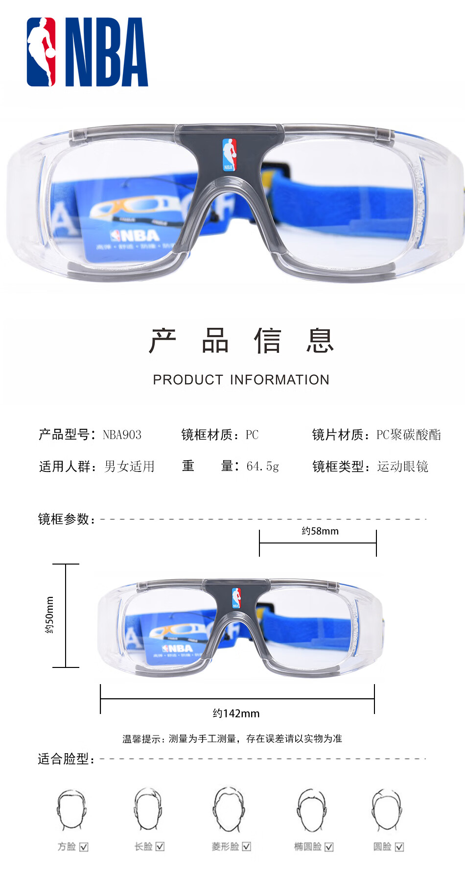 NBA sports glasses myopia basketball glasses football goggles boxing glasses anti-fog PC material NBA903 starts school