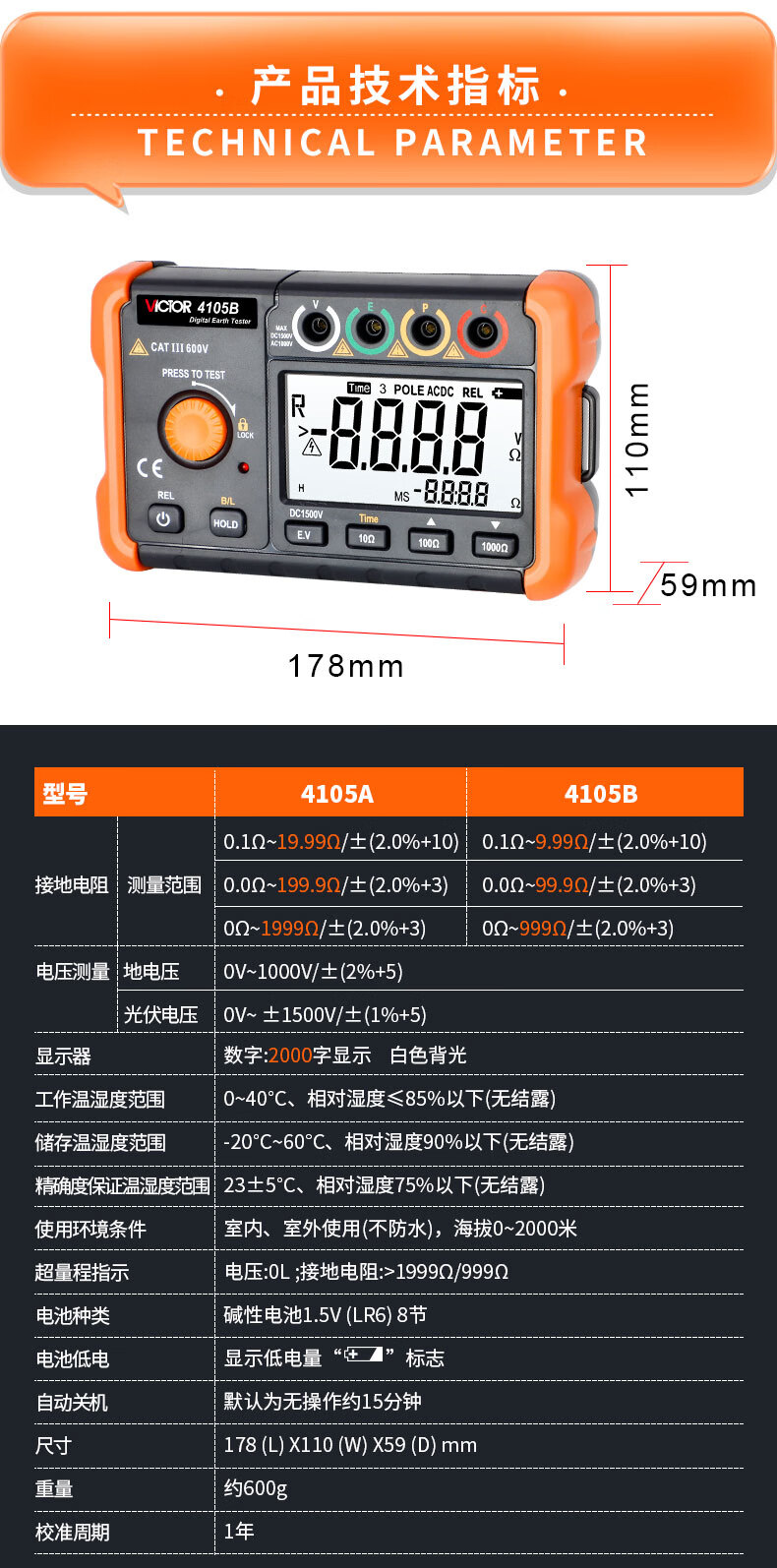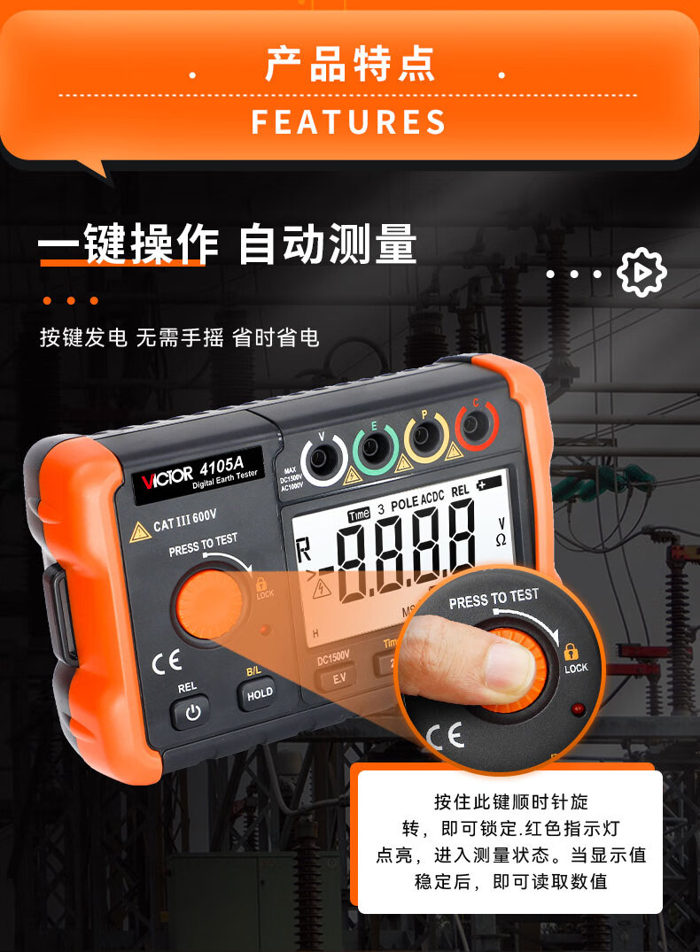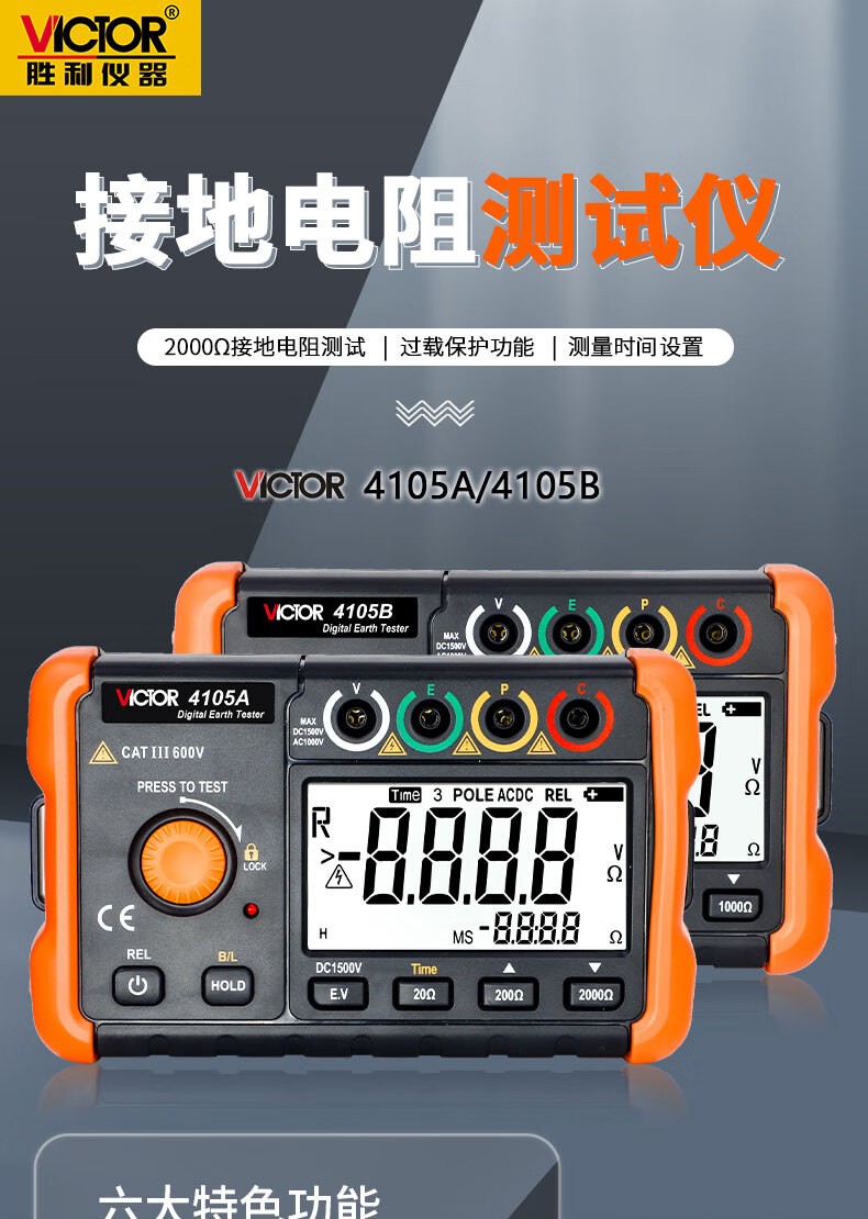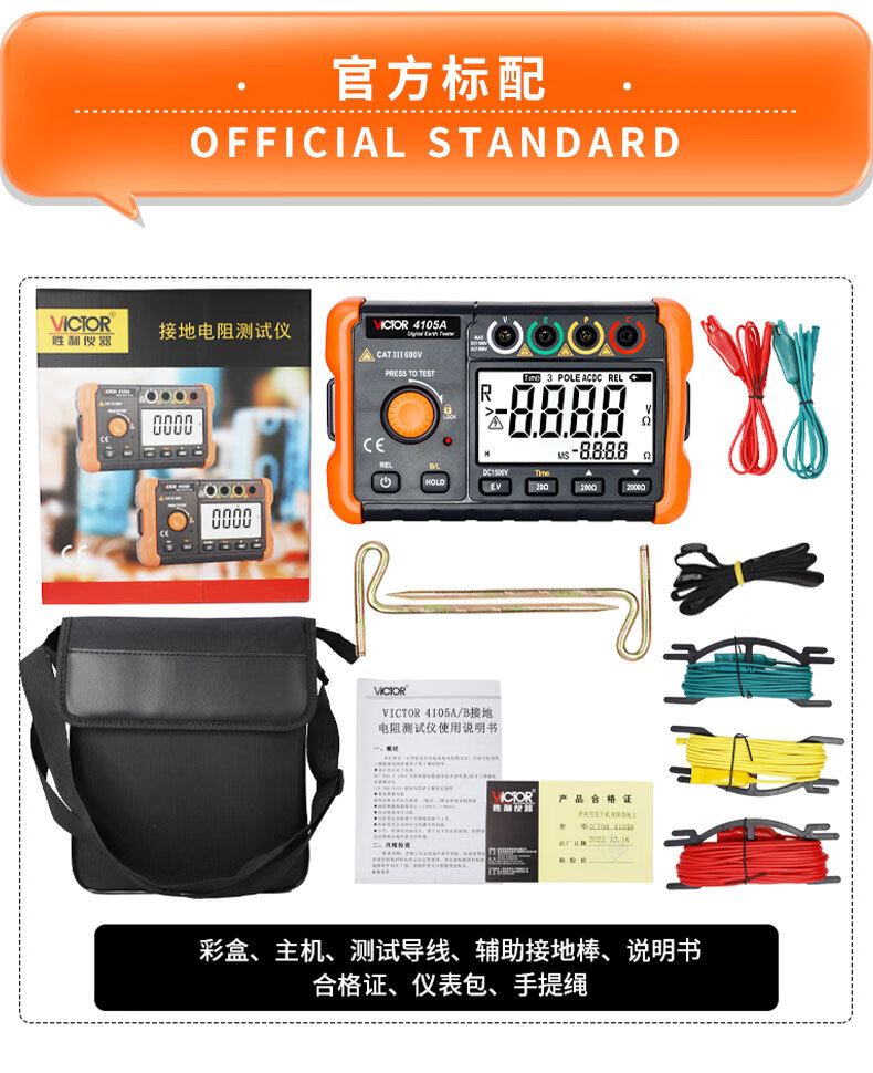 Victory Instrument (VICTOR) lightning protection ground resistance tester ground resistance meter digital display rocker ground detection VC4105A plus power adapter