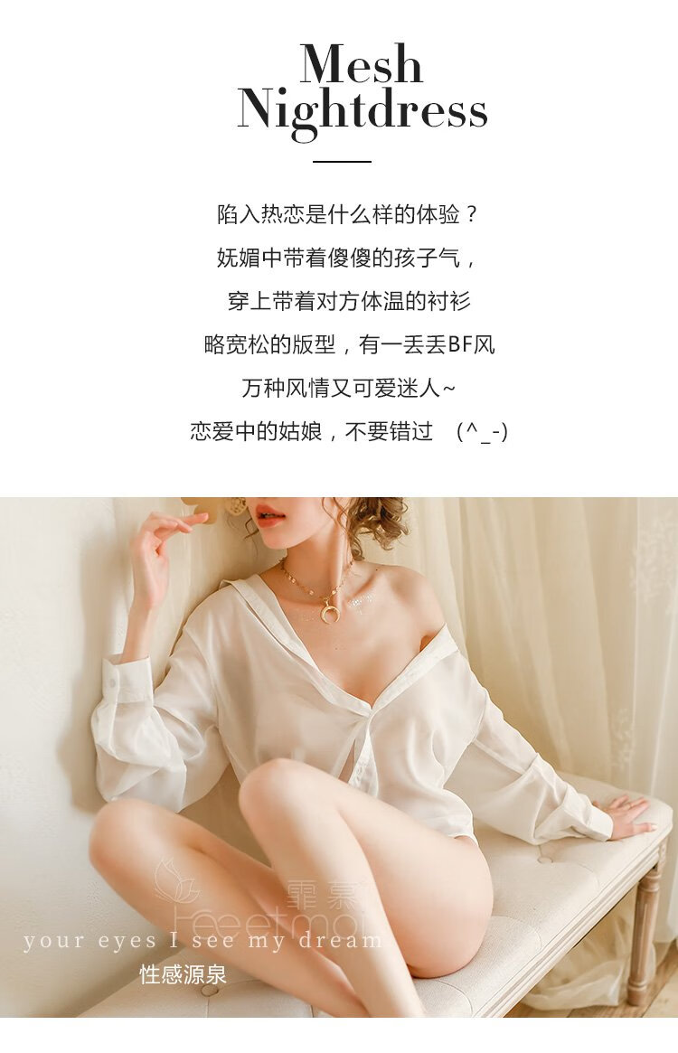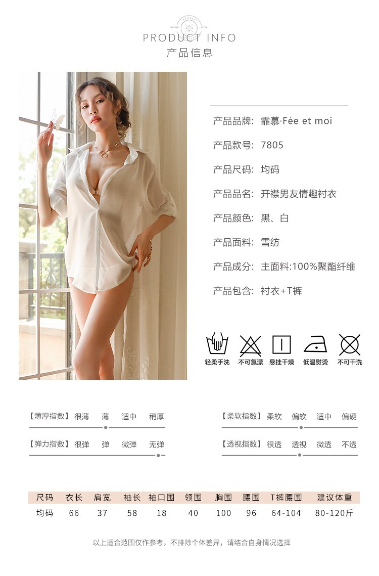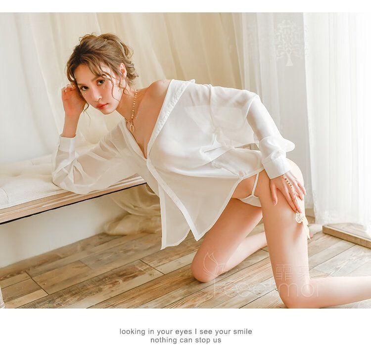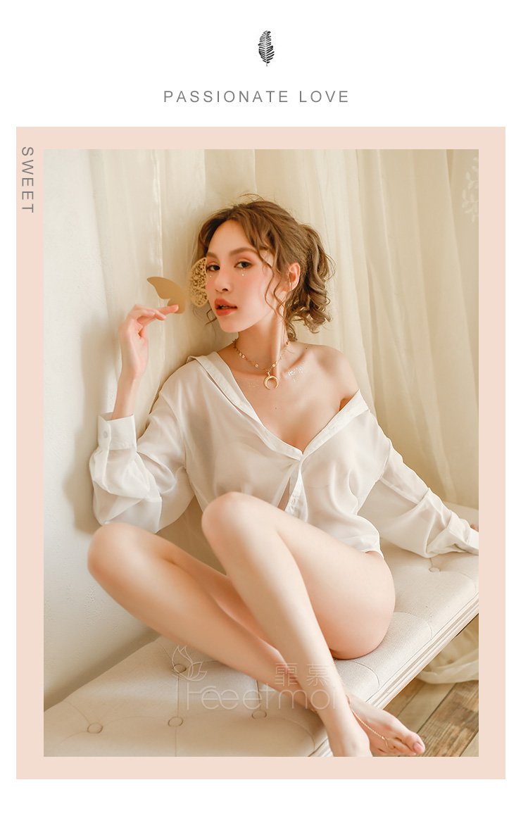 Feimu sexy lingerie sexy shirt boyfriend style see-through sexy suit sexy underwear thong white 7805