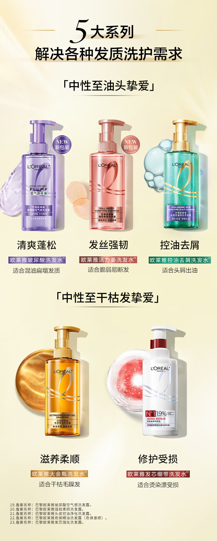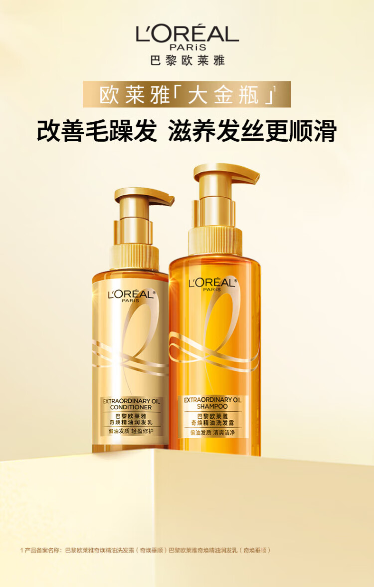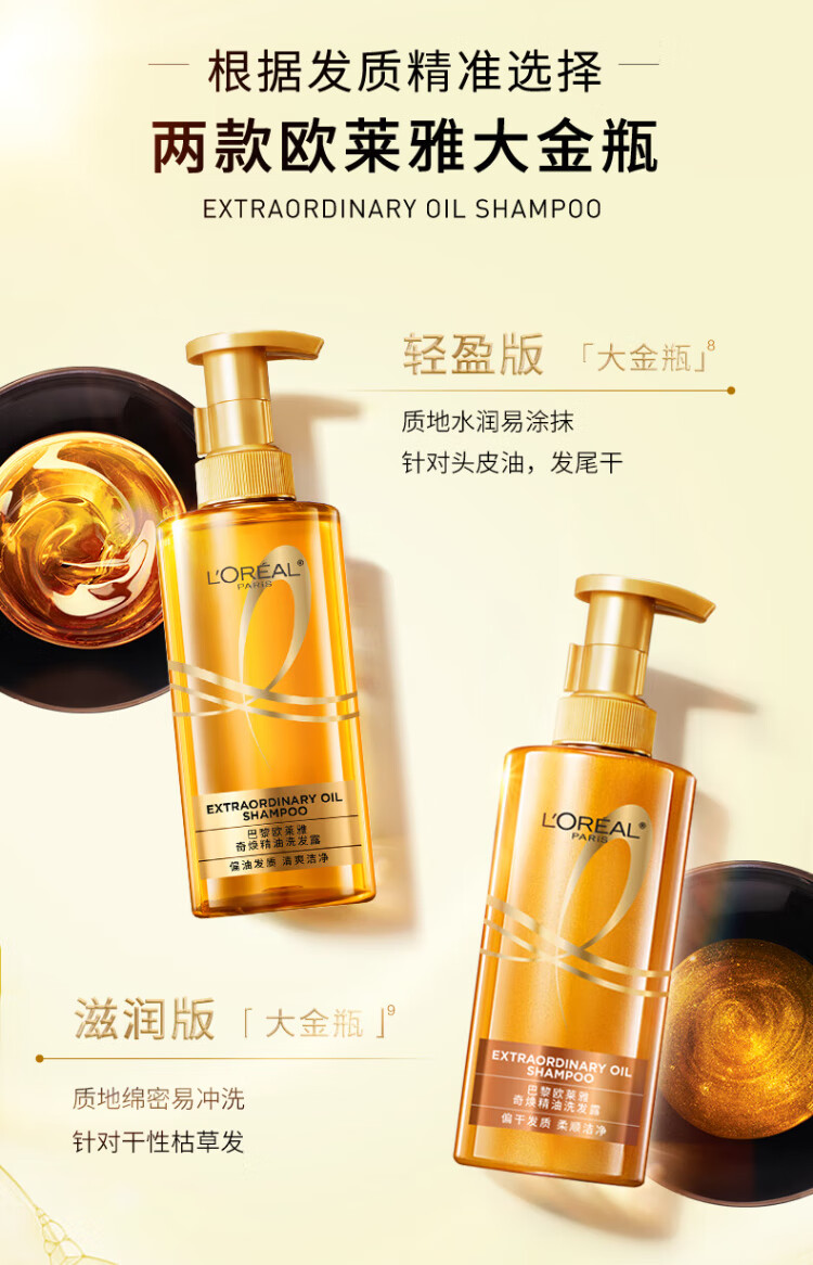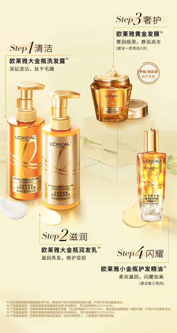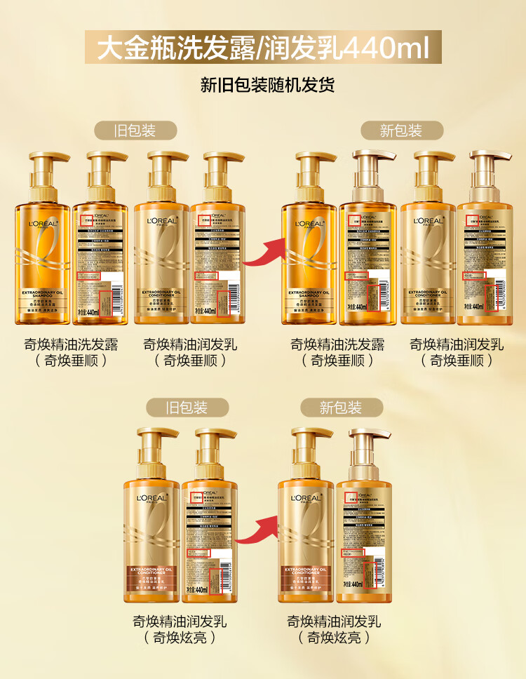 L'Oreal Big Gold Bottle Shampoo Conditioner Smooth and Smooth Improve Dry Hair Shampoo Care Set 440ml*2