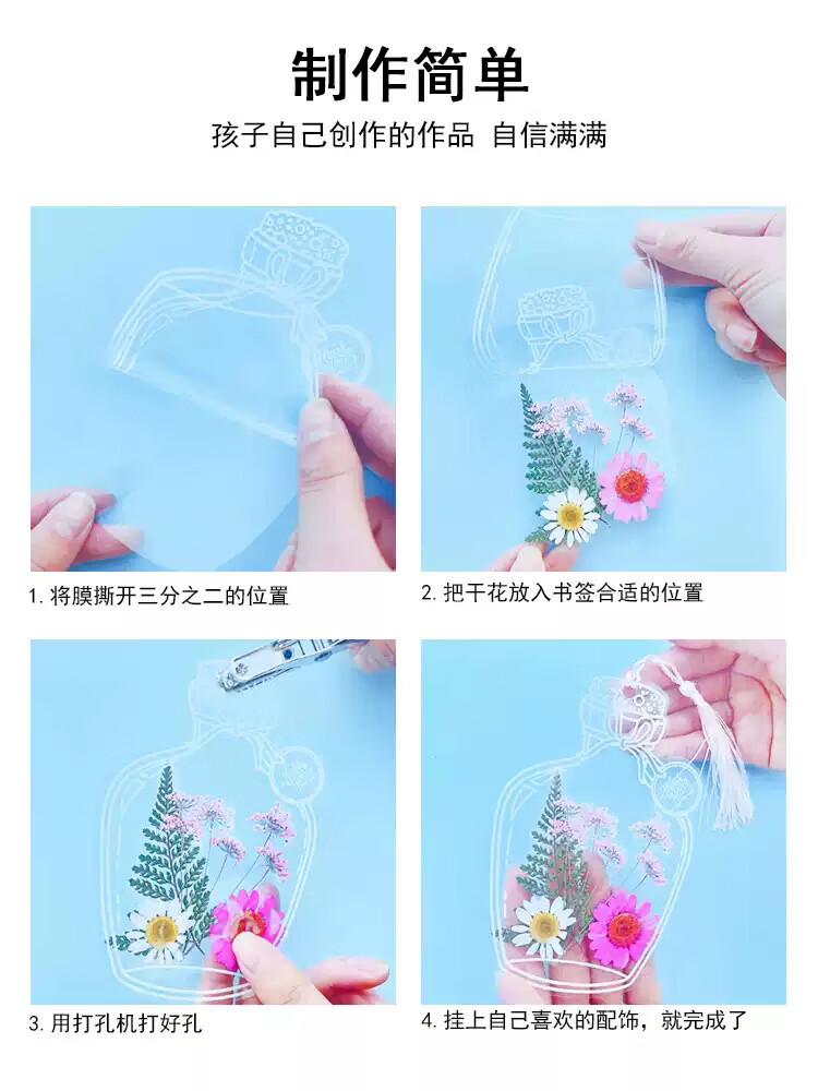 Qiaoxinshi leaf specimen plastic sealing film 20 pieces of handmade diy material dried flower bookmarks autumn ginkgo leaves transparent leaf plants