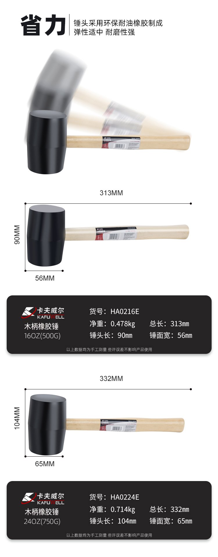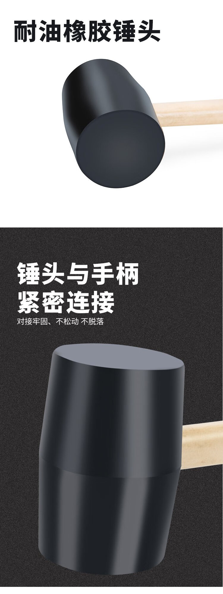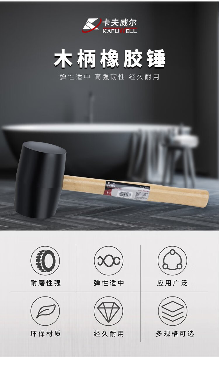 Kraftwell wooden handle rubber hammer rubber hammer inspection hammer rubber hammer floor tile installation hammer 750g HA0224E