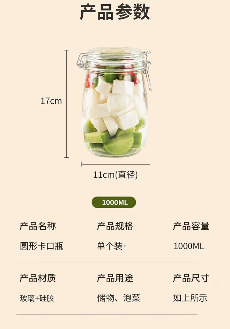 Baijie glass sealed jar storage bottle wine bottle glass bottle honey jar jam jar pickle jar 1000ml can bottle