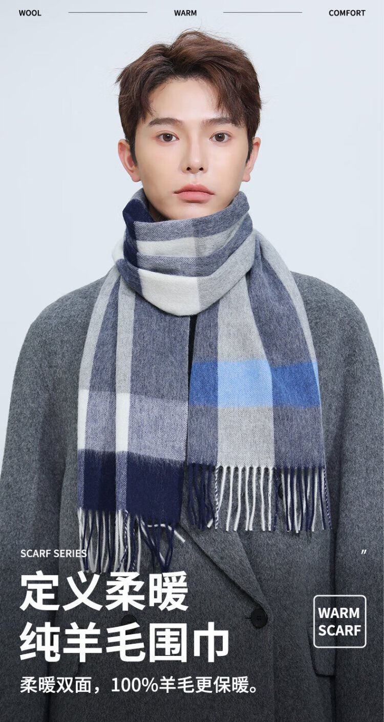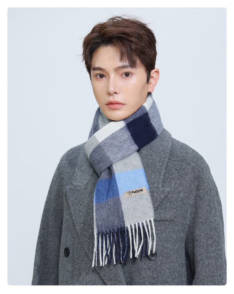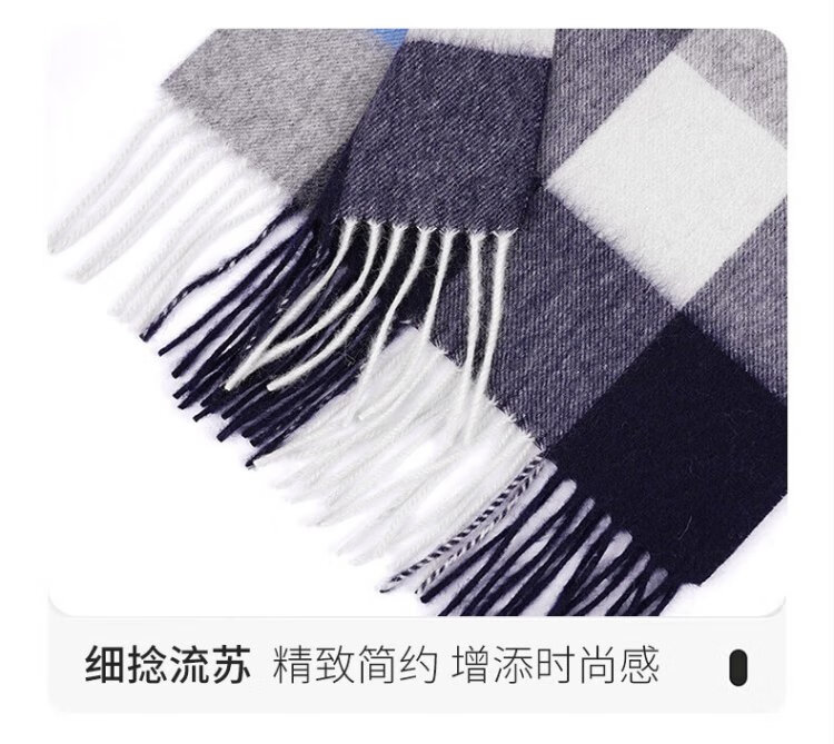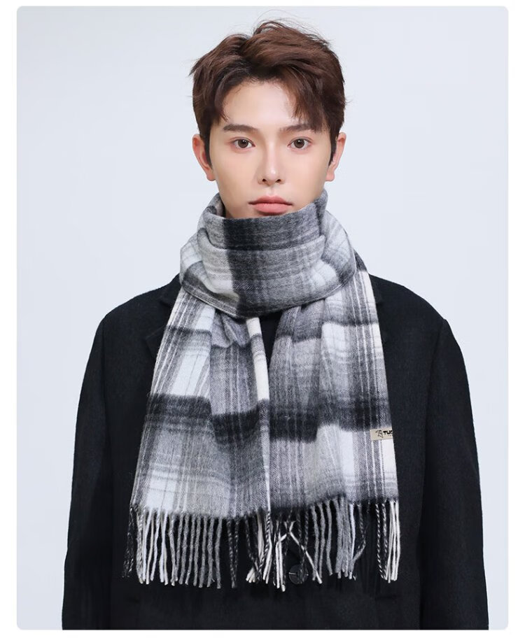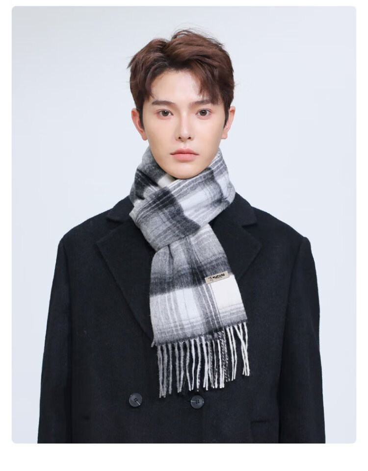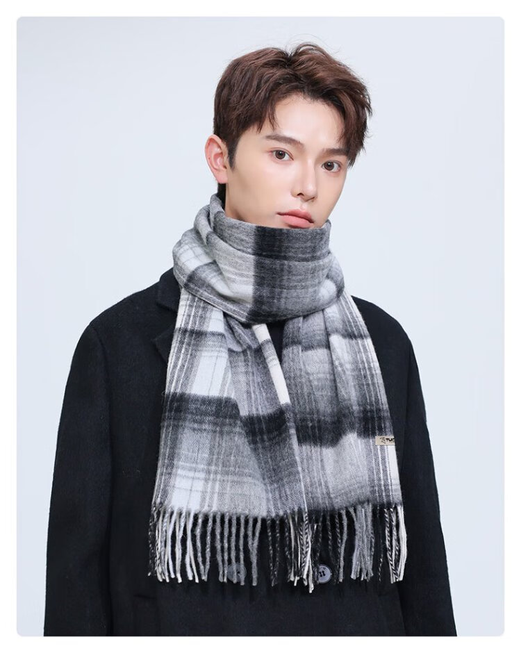 Woodpecker pure wool scarf men's autumn and winter classic plaid warm and cold-proof scarf birthday gift for boyfriend and husband