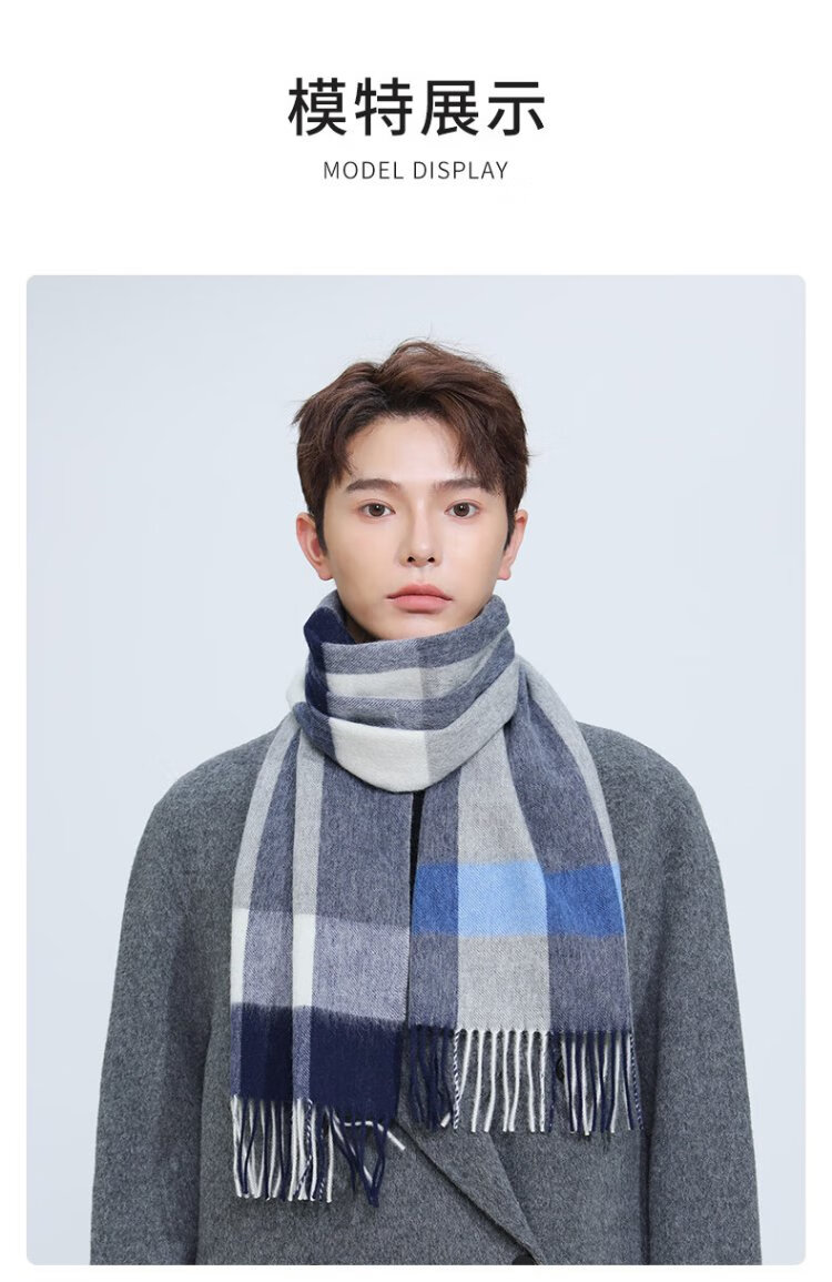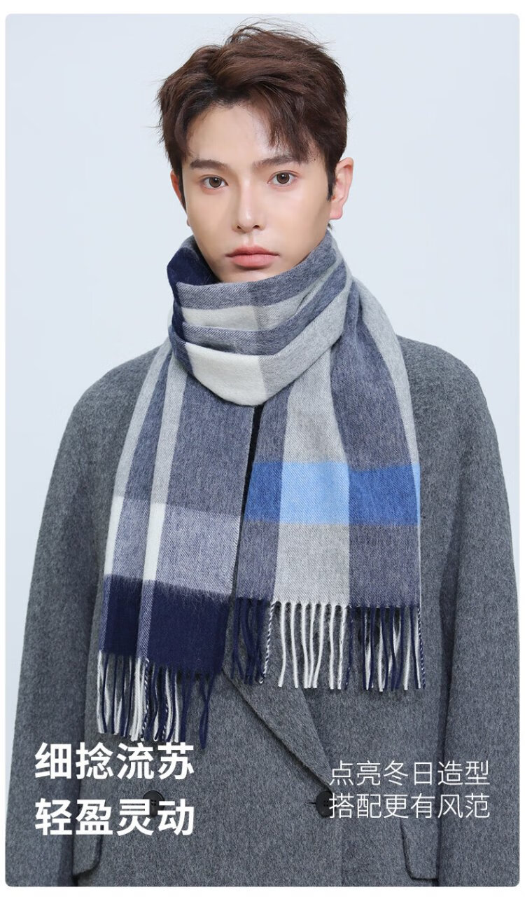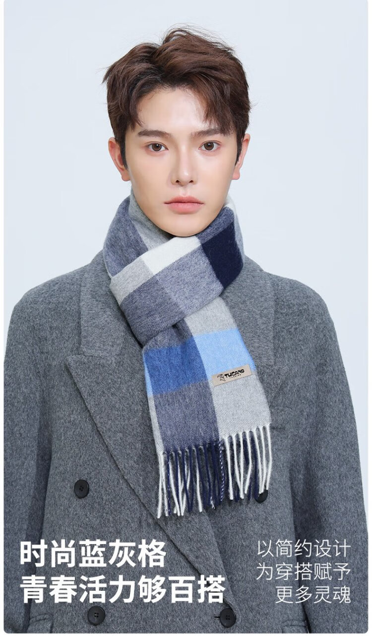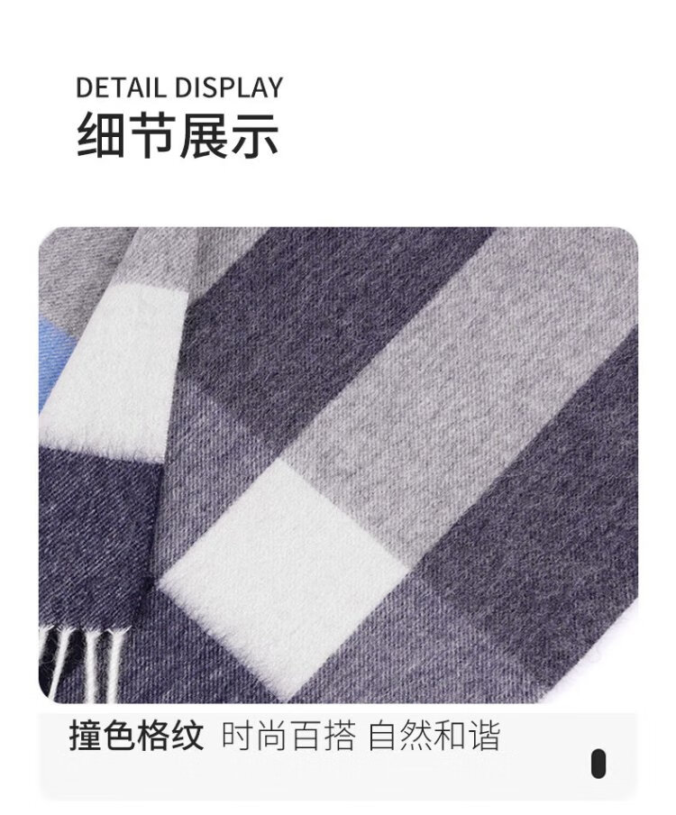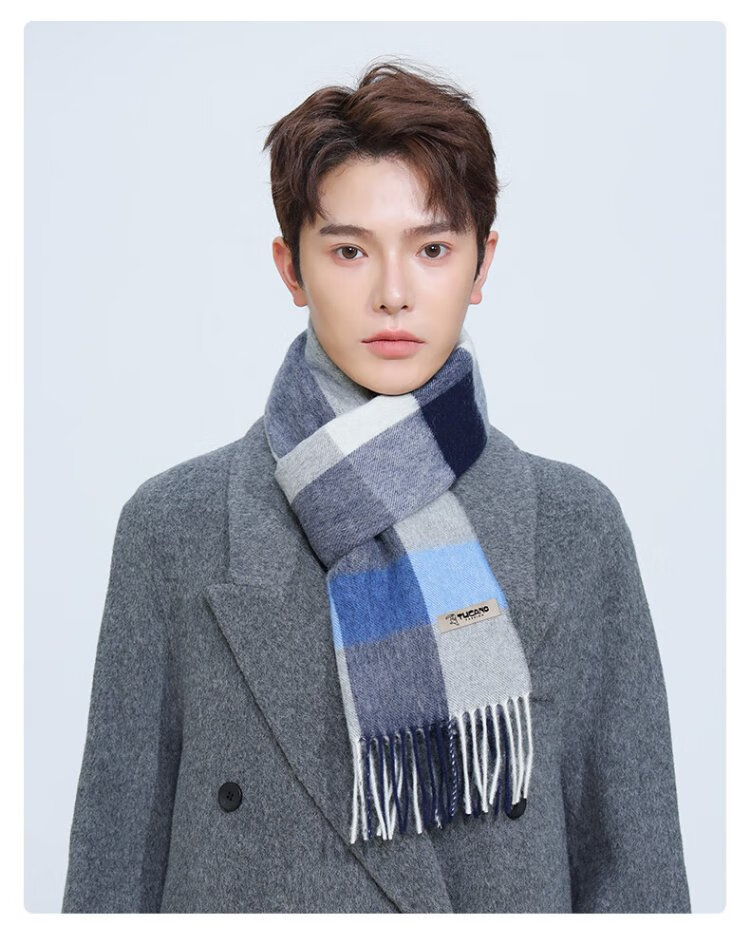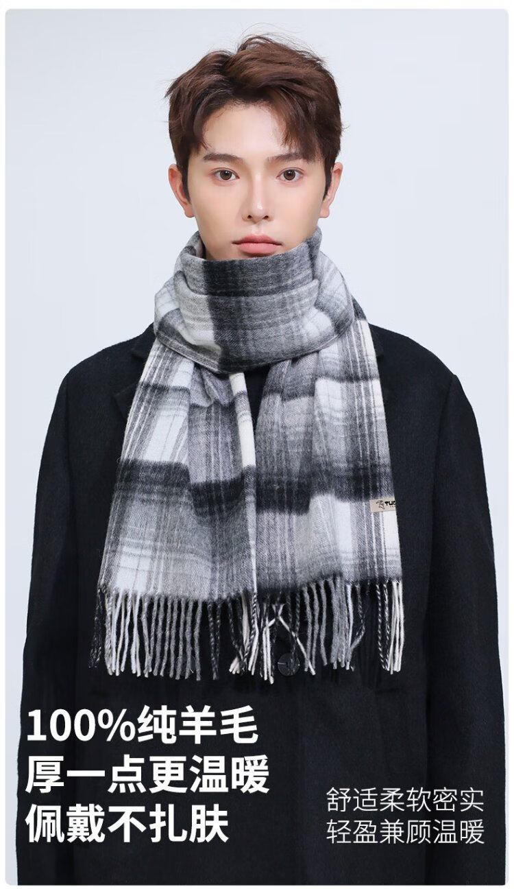 Woodpecker pure wool scarf men's autumn and winter classic plaid warm and cold-proof scarf birthday gift for boyfriend and husband