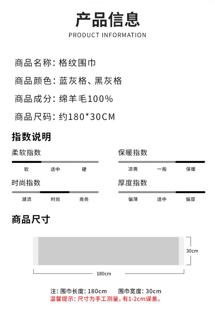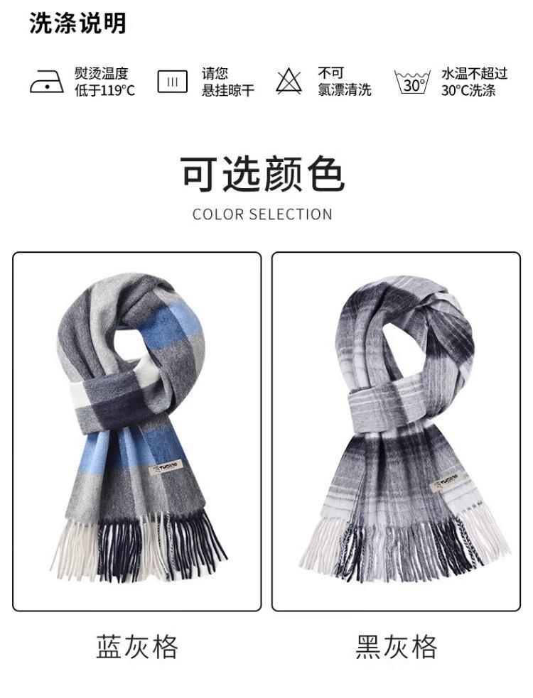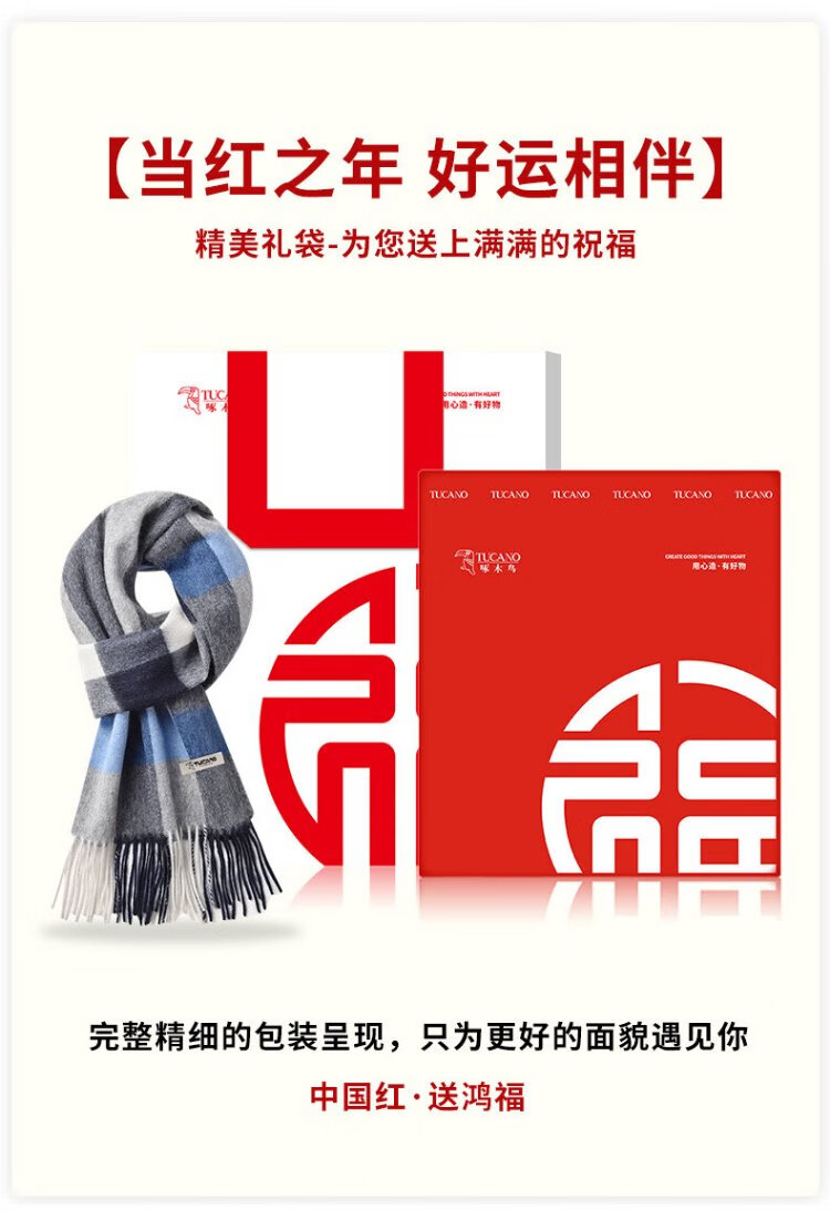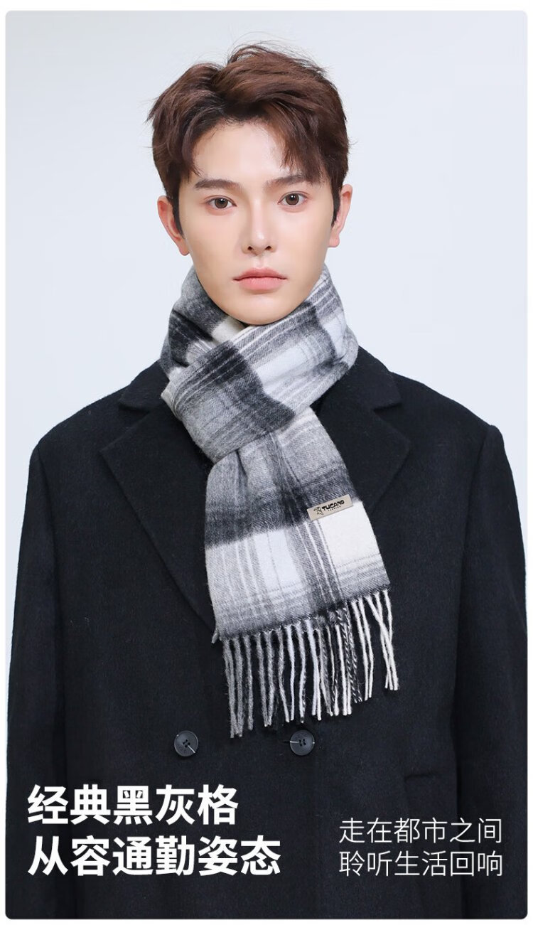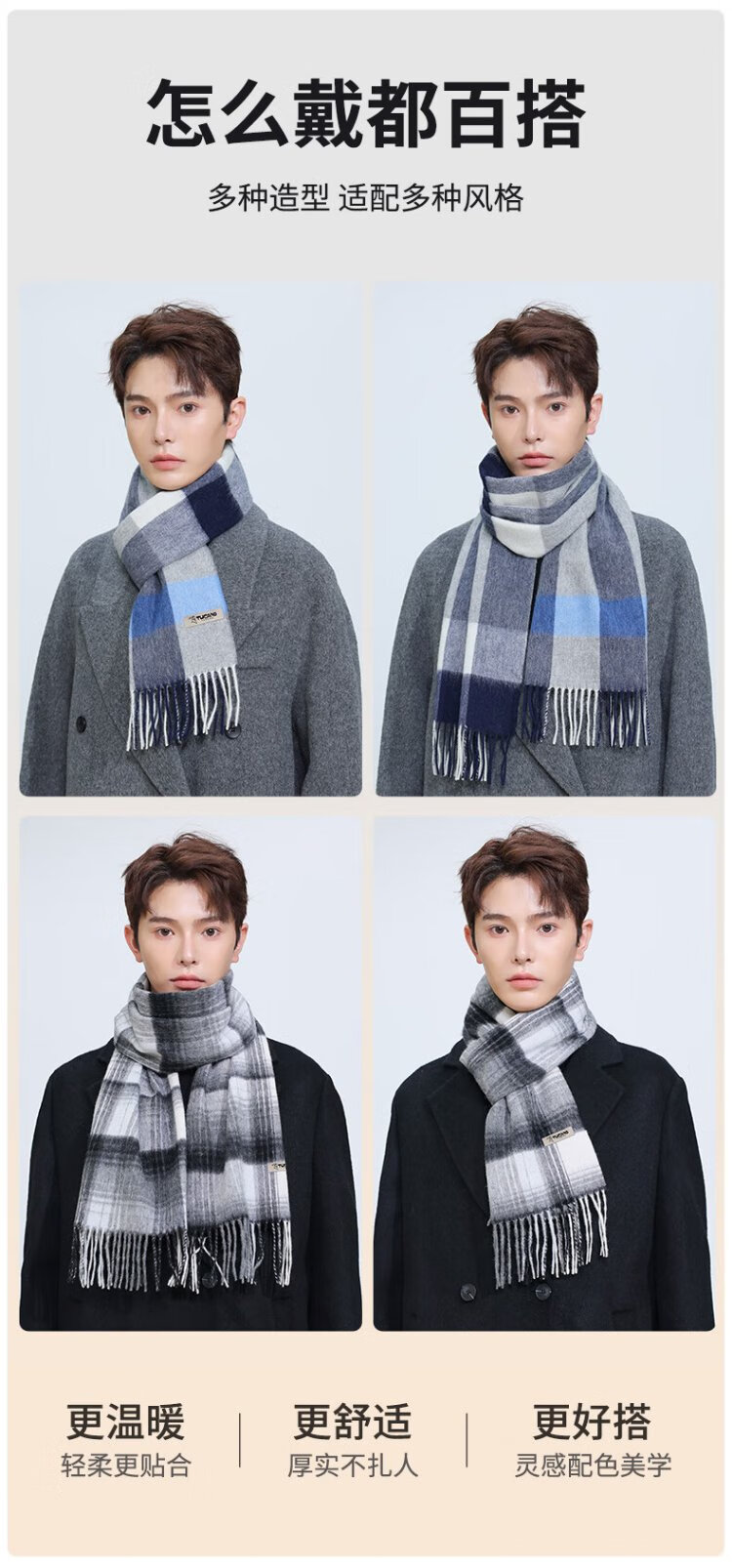 Woodpecker pure wool scarf men's autumn and winter classic plaid warm and cold-proof scarf birthday gift for boyfriend and husband