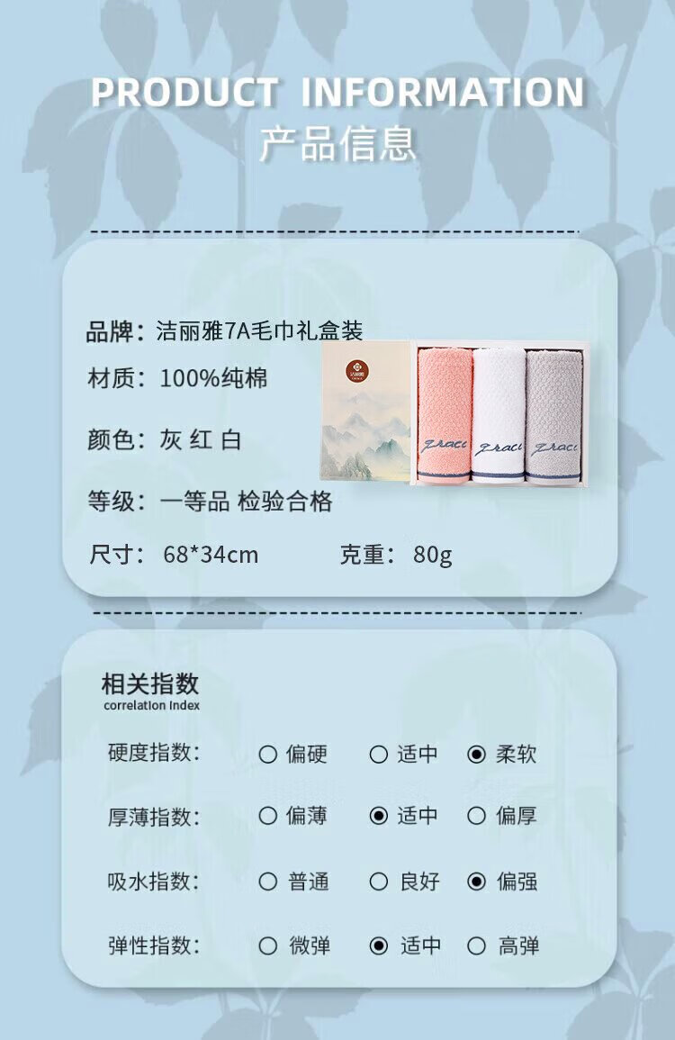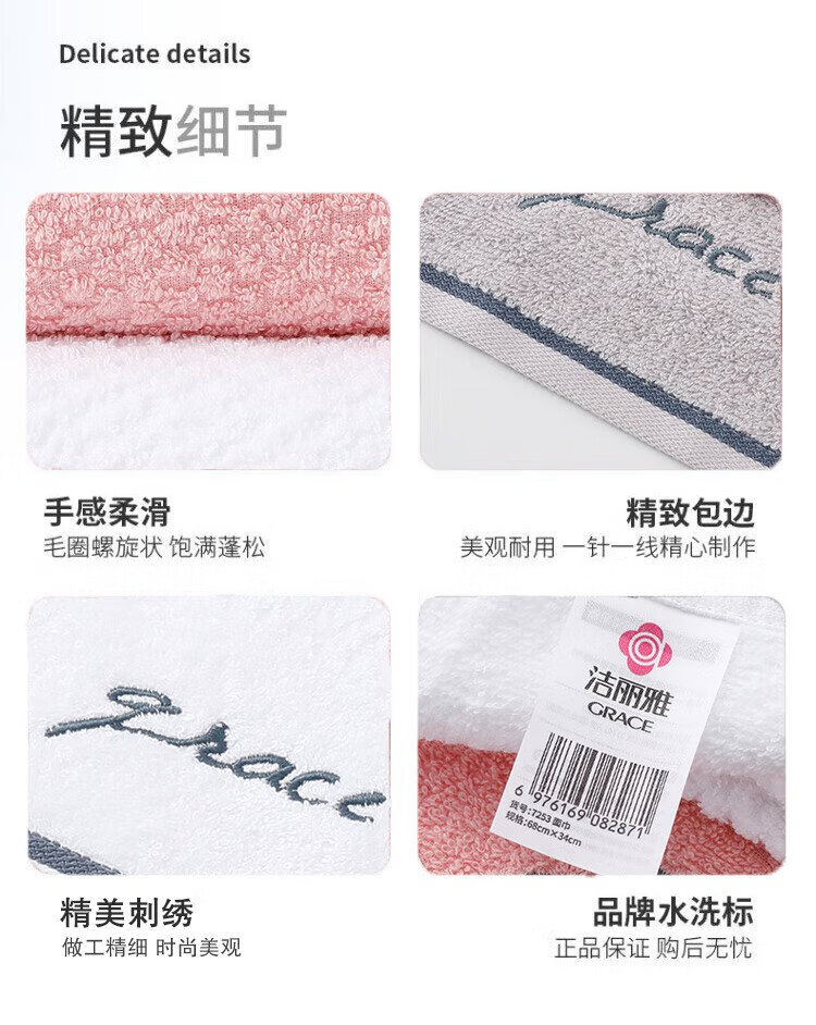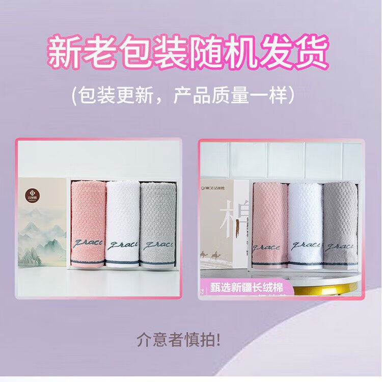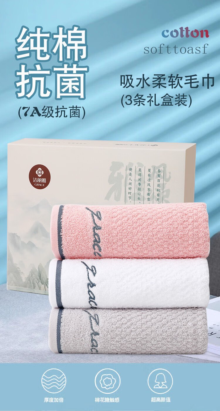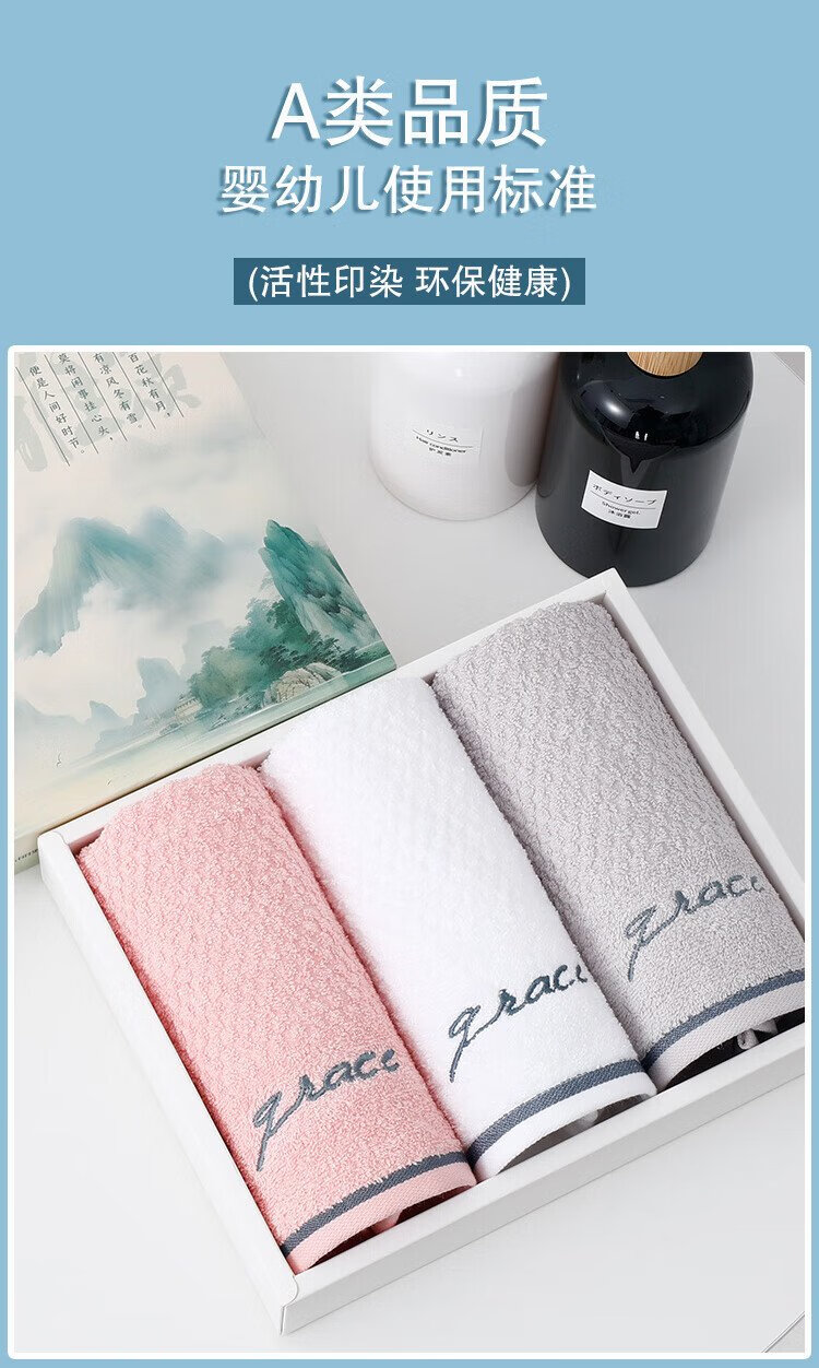 Grace towel 3 pack 10A antibacterial pure cotton water-absorbent plain face cleansing towel face towel Chinese style gift box