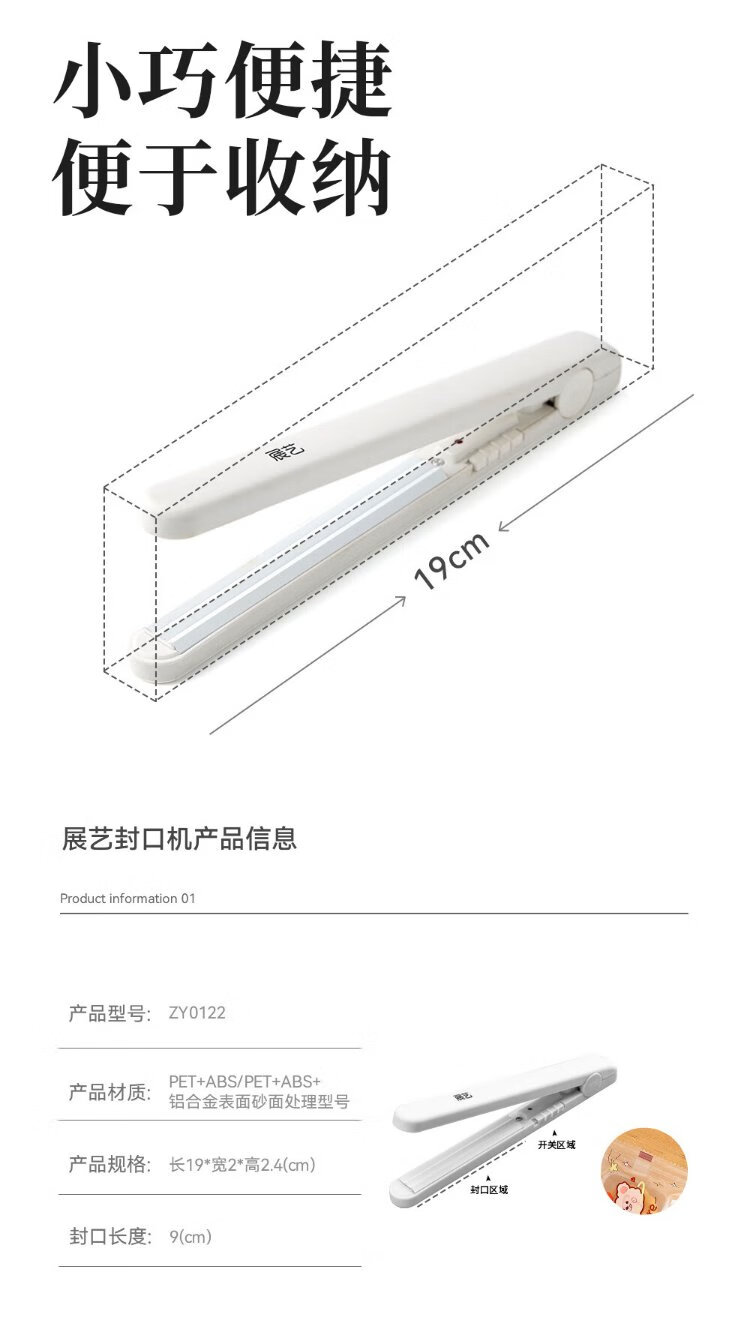 Zhanyi white plug-in sealing machine small mini portable snack nougat snowflake pastry bag sealing