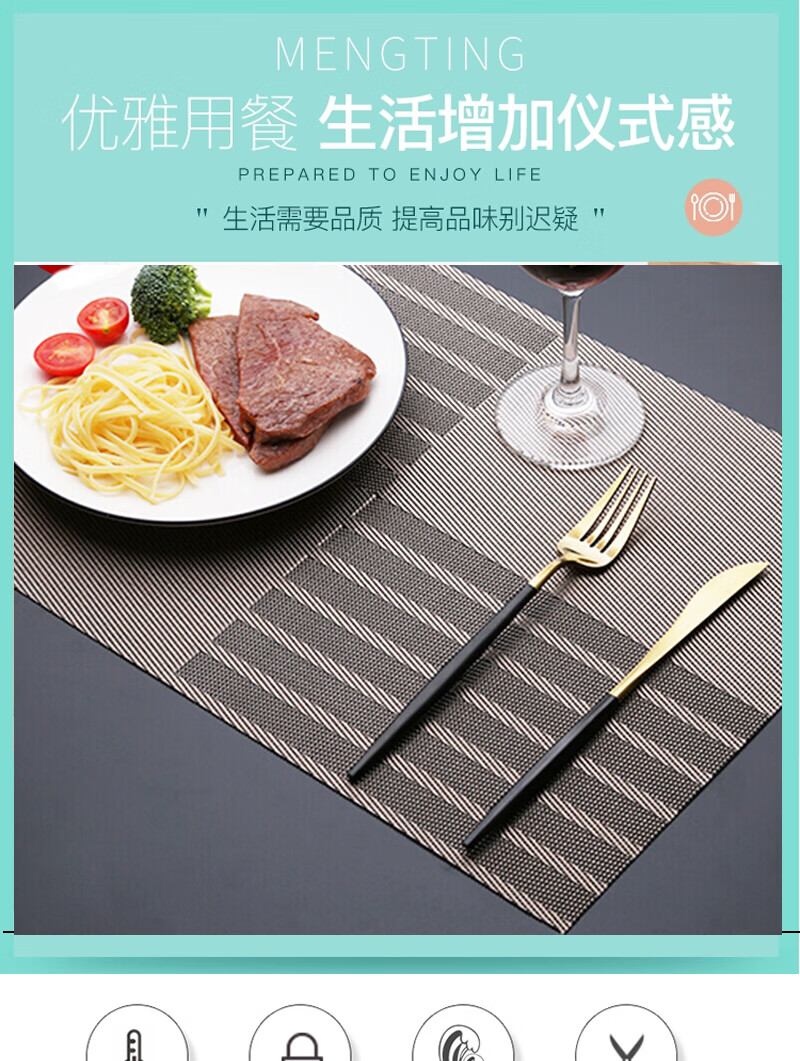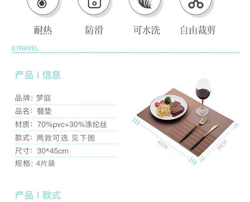 Mengting dining table mats, coffee table mats, Western food mats, table mats and coasters, anti-scalding, heat-insulating mats, 4 pieces, 45*30cm 3027