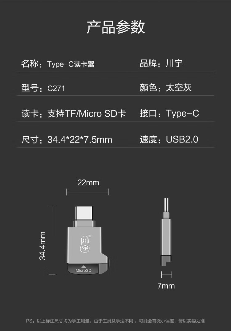 Chuanyu USB-C high-speed TF card reader Type-c SLR camera memory card driving recorder drone computer Apple 15 mobile phone memory card mini card reader