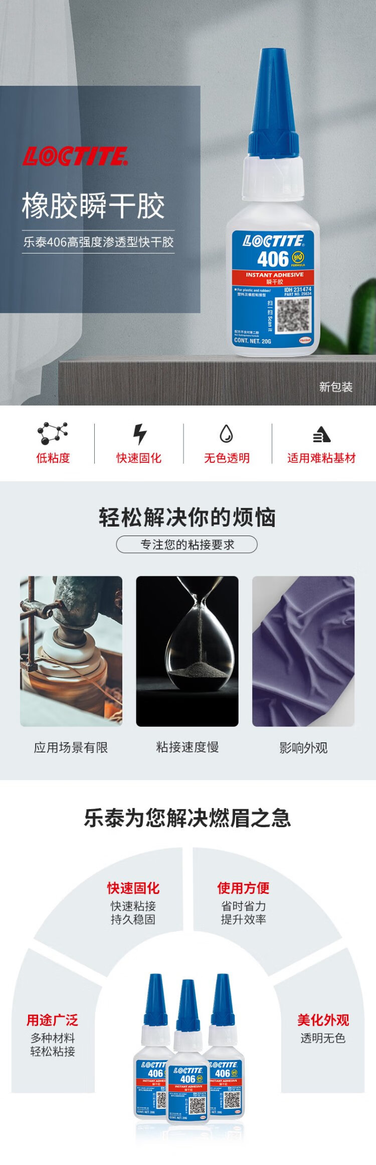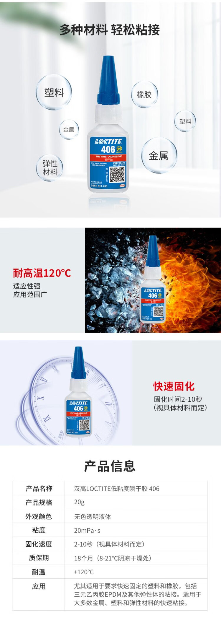 Loctite/loctite 406 powerful quick-drying glue rubber quick-curing instant glue EPDM plastic metal and elastic material glue 20g 1 stick