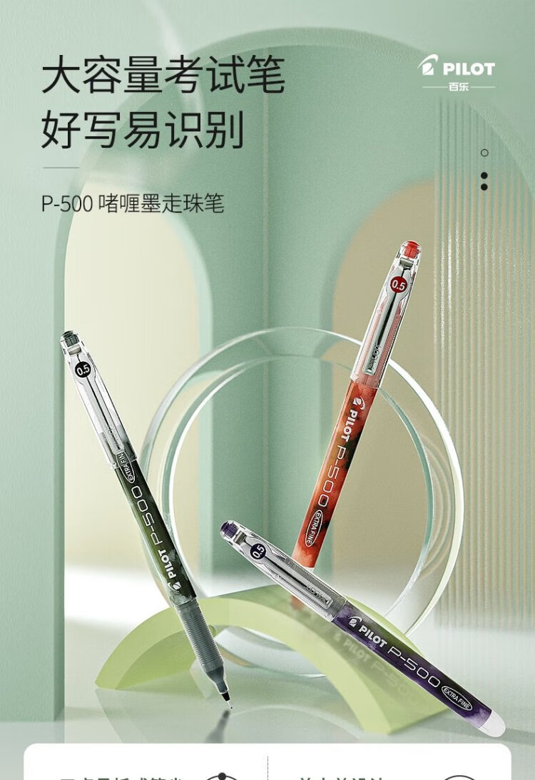 百乐(PILOT)【热门商品】P500黑色中性笔水笔0.5直液式走珠笔签字笔学生文具办公用品刷题笔高颜值考试笔 单支