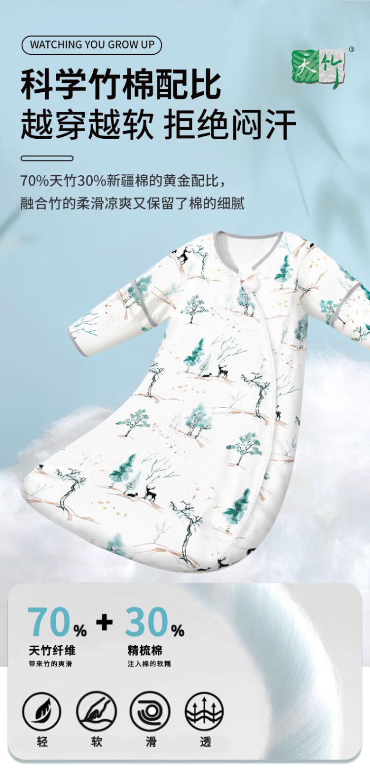Antarctic baby sleeping bag baby bamboo cotton gauze all-in-one pajamas for the first 4 and 2 days of summer children anti-kick quilt thin