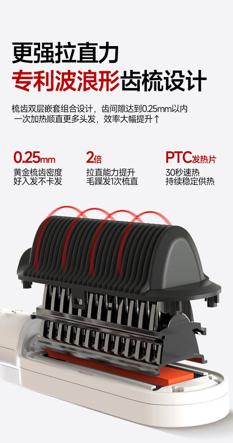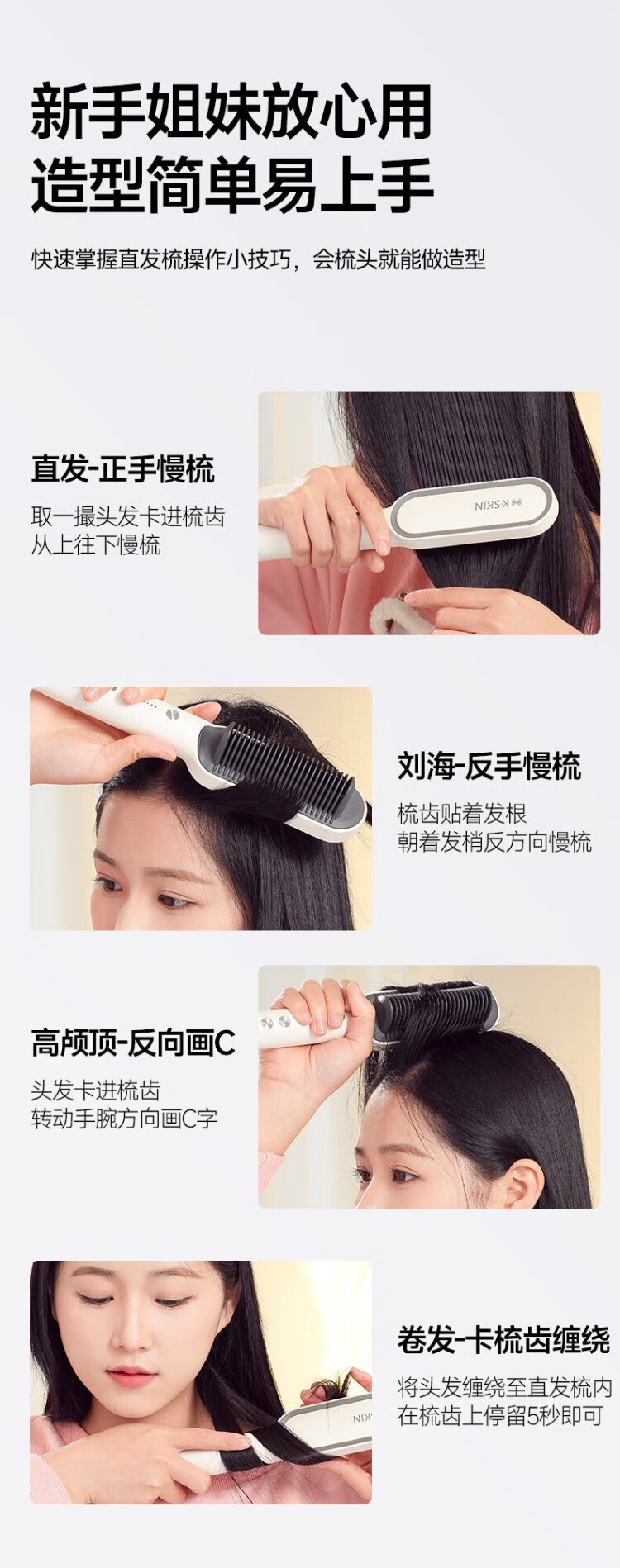 Jindao hair straightening comb with inner buckle in the splint of the curling wand. Straight plate with high cranial clip to improve frizz and fluffy styling. Magic comb. 30-second rapid heating and constant temperature hair care. KD380 is a must-have for traveling in white.