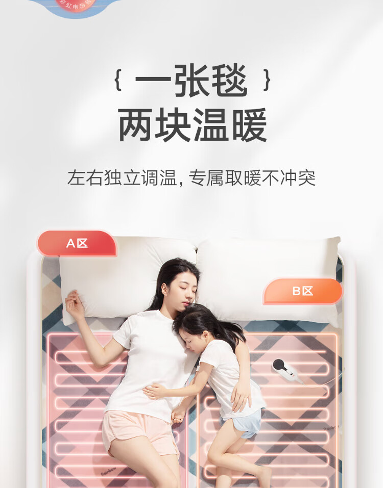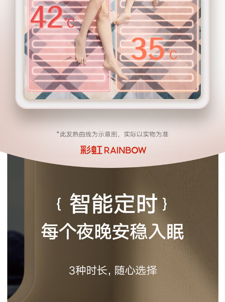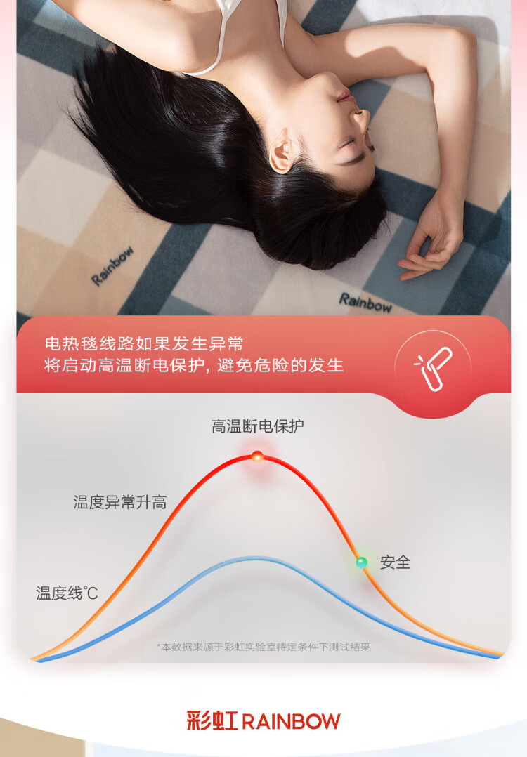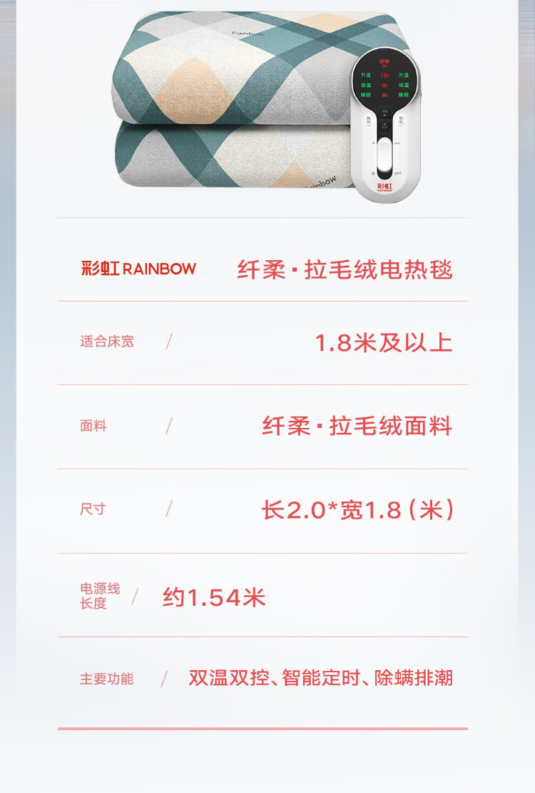 Rainbow Double Automatic Power Off Intelligent Timed Dual Temperature Dual Control Mite Remover Plush Electric Blanket Electric Mattress 2.0*1.8 Meters
