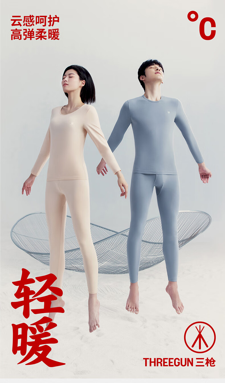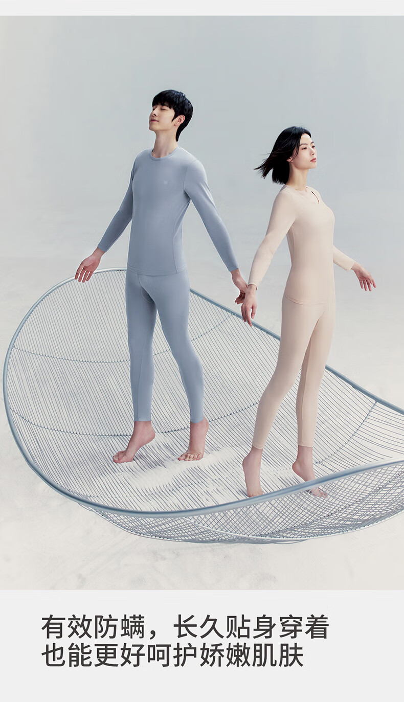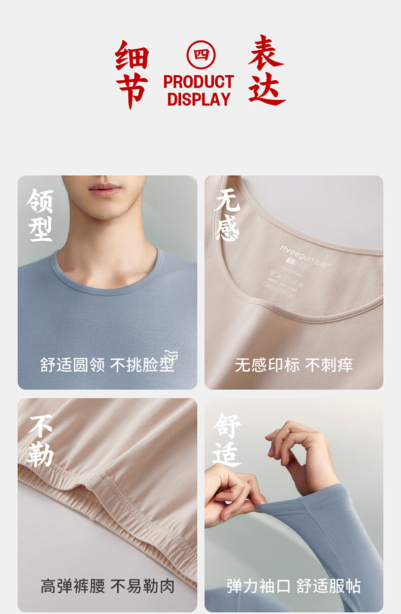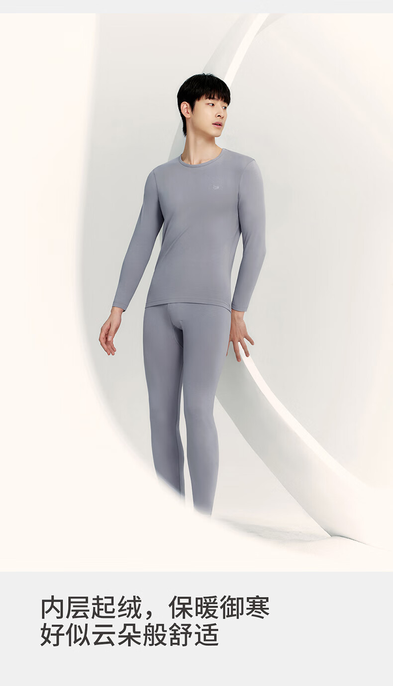 Three-gun antibacterial and anti-mite autumn clothes and long johns men's suit soft and light elastic cotton round neck thermal underwear for men