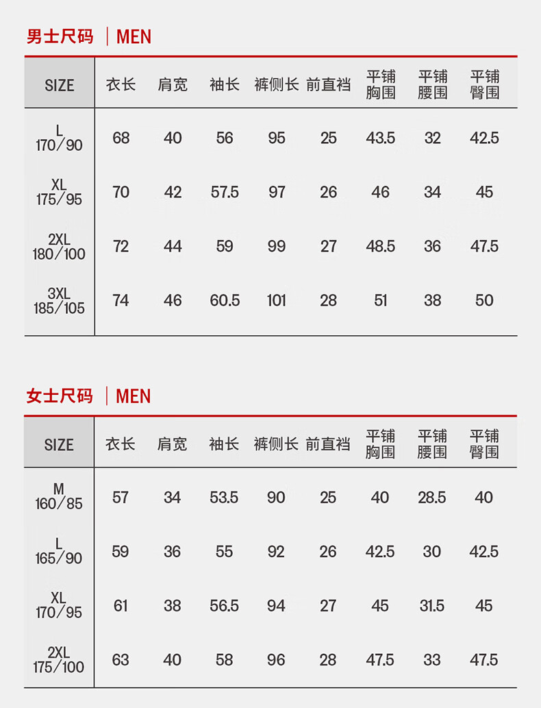 China (cm) 160-165/84-86 165-170 / 88-90 167-172 / 92-96 168-173 / 98-102 170-176 / 106-110