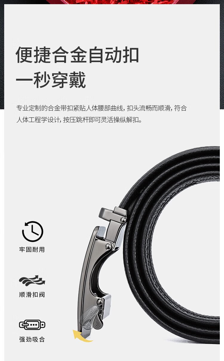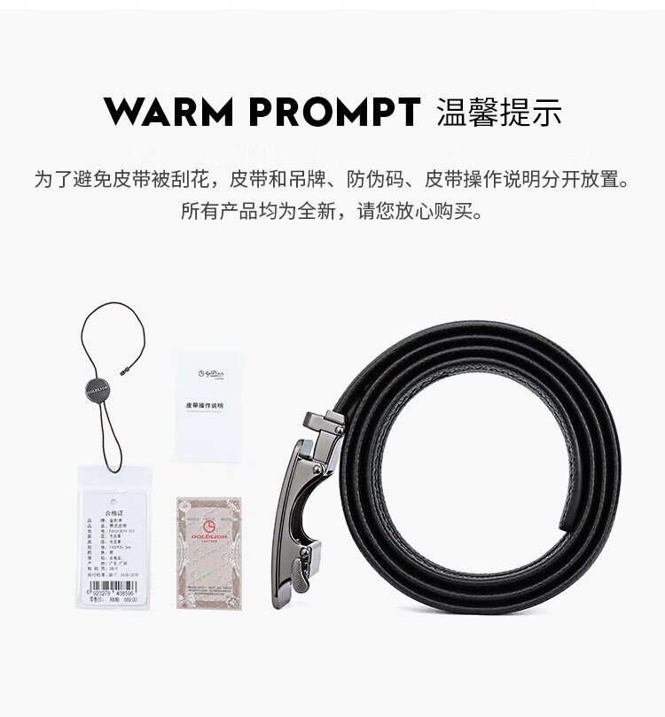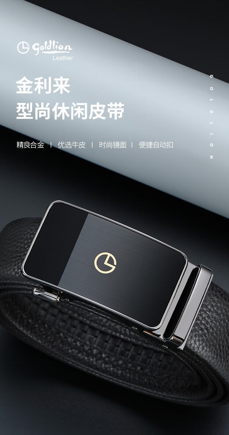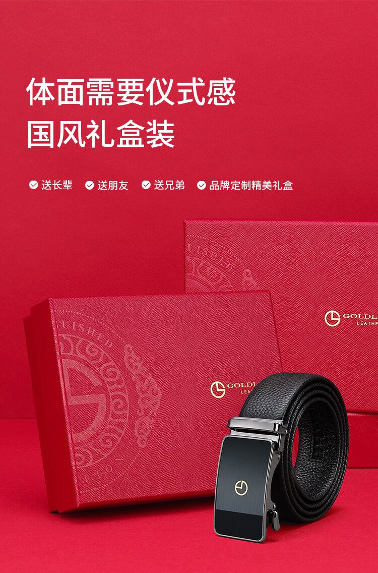 Goldlion men's automatic buckle belt business casual belt gift box first layer cowhide trouser belt birthday gift for dad