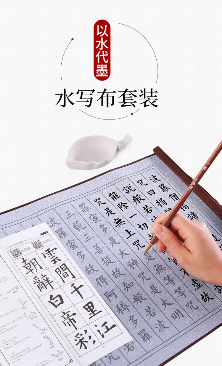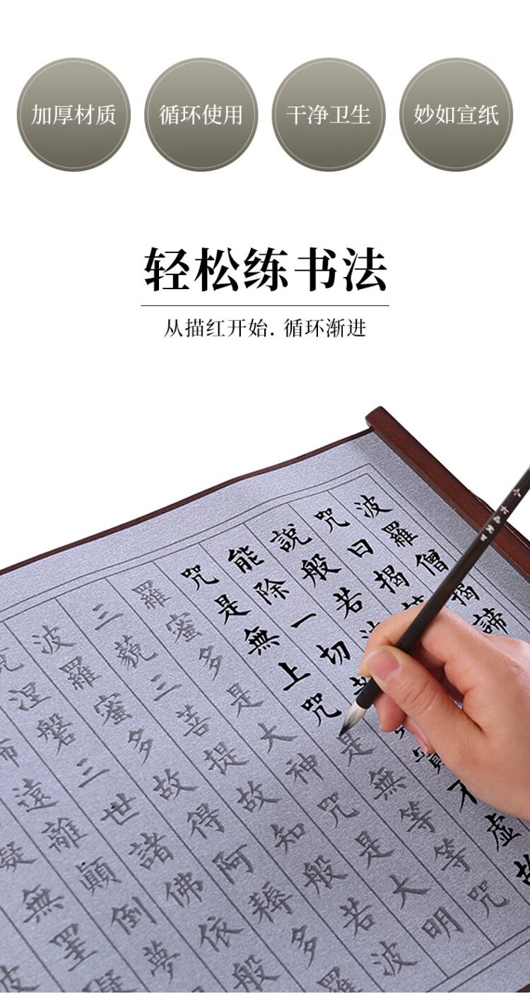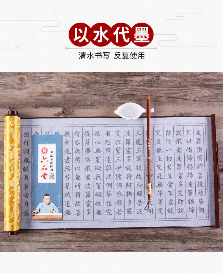 六品堂心经抄经本小楷毛笔字帖水写布成人初学者练字楷书入门练书法临摹套装清水卷轴佛经文房第五宝