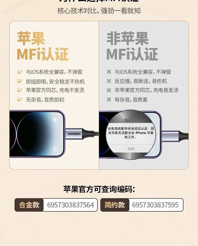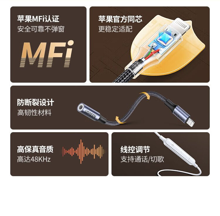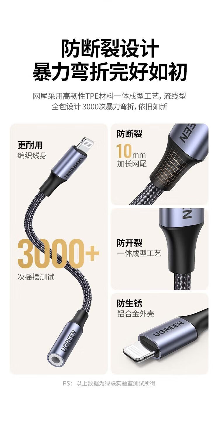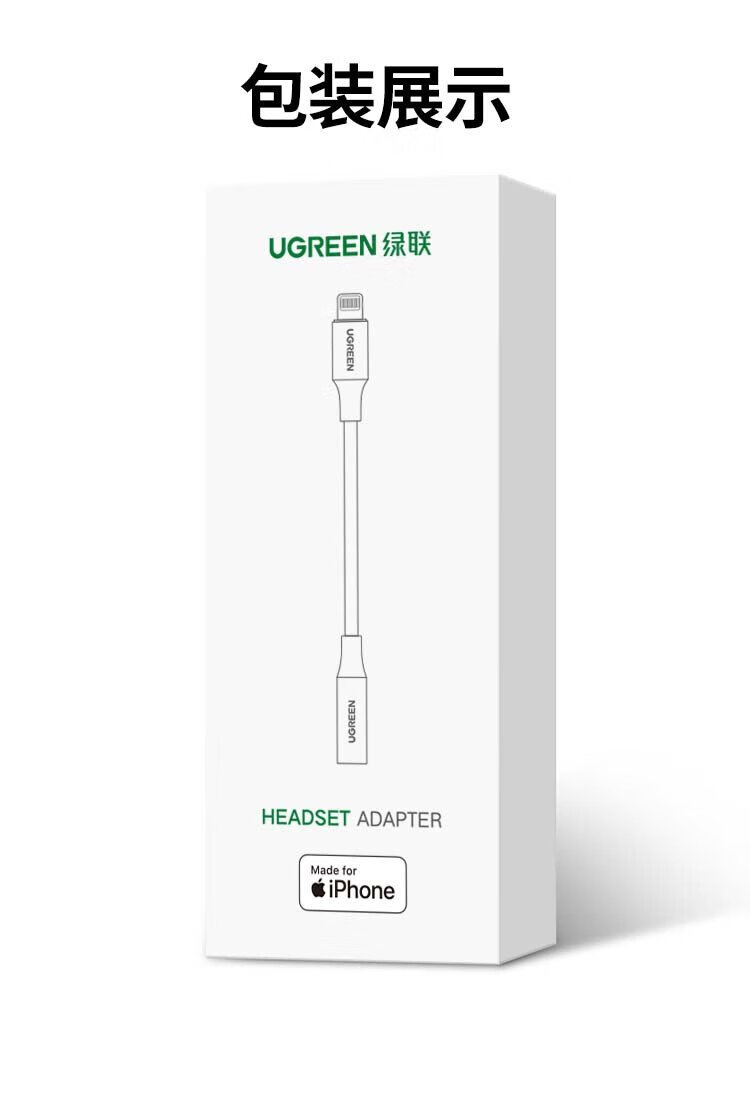 绿联耳机转接头MFi认证音频转换器Lightning转3.5转接线手机/平板适用于苹果iPhone14/13/12/iPad