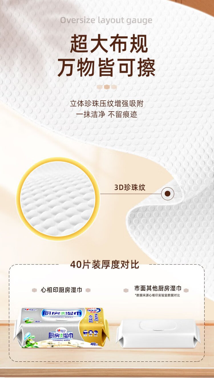 Xinxiangyin kitchen wipes 40 pumps * 3 packs, gold-packed kitchen wet wipes for degreasing stains, new and old packaging randomly distributed