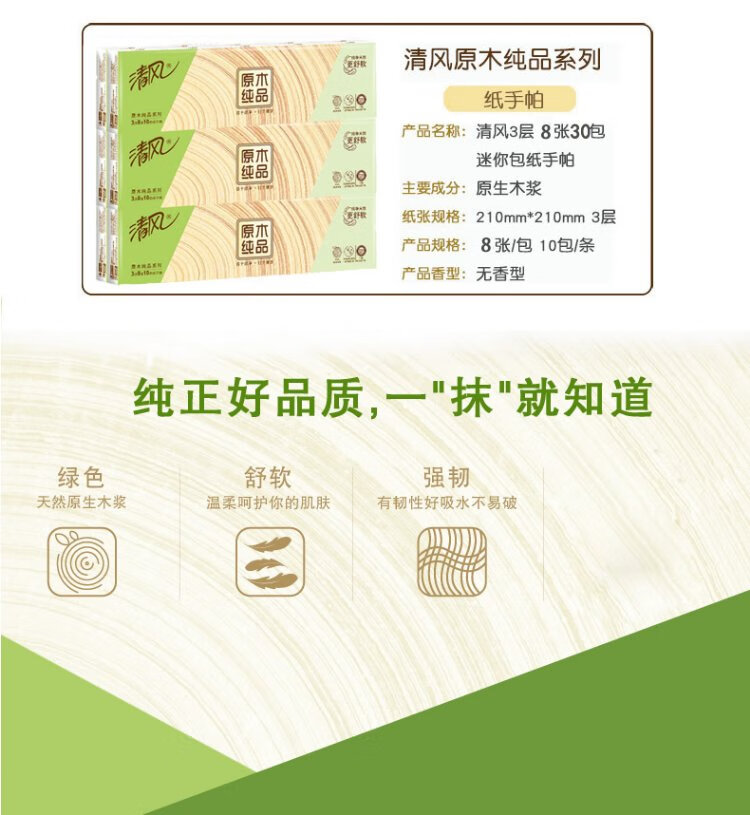 Breeze handkerchief paper 3 layers 8 sheets * 30 pack small pack facial tissue portable bag for home school travel B66ACM