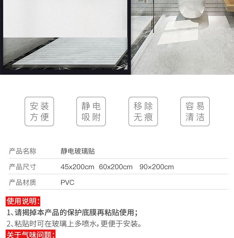 Fuju bathroom frosted glass privacy film bathroom privacy door window sticker light-transmitting and opaque 90*200cm